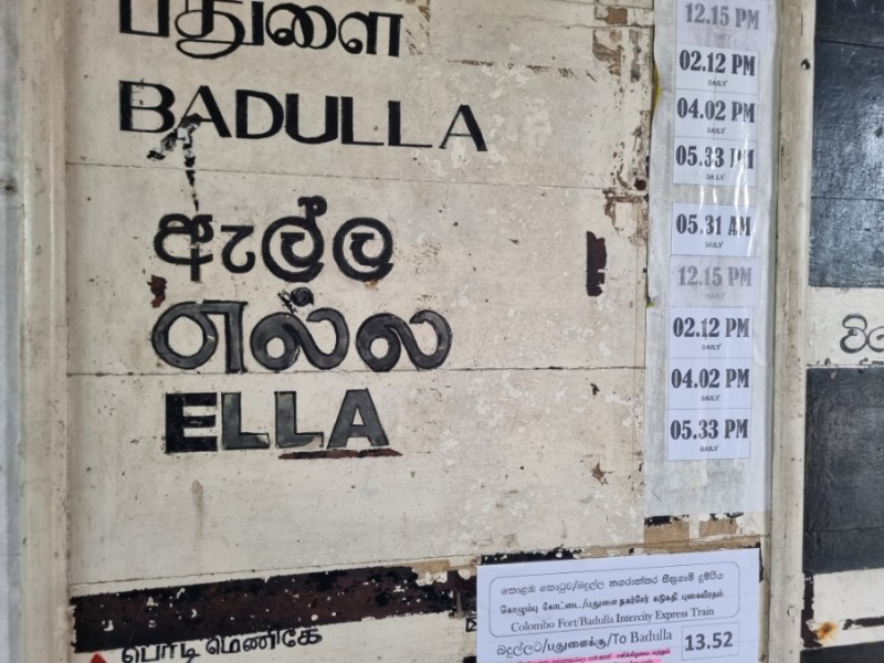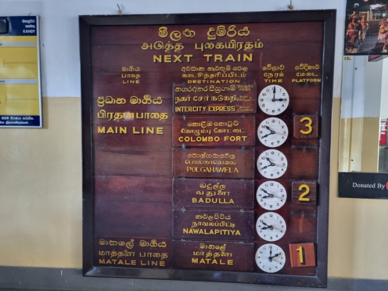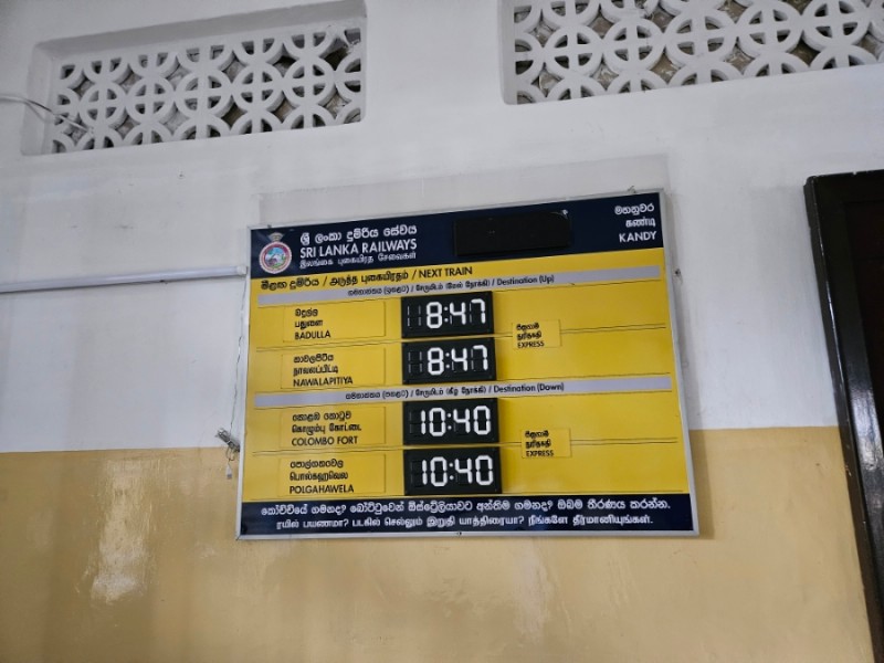 기차역에 이렇게 전자식이 아닌 수동으로 안내판이 만들어져 있었다. 8시 45분에 2번 라인에서 출발하는 기차가 총 3개나 되어서, 도대체 어떤 기차가 하푸탈레로 가는 것인지 몰랐는데 왠지 여기 직원으로 보이는 분에게 물어서 'Badulla'가는 기차가 하푸탈레로 간다는 것을 알아냈다.