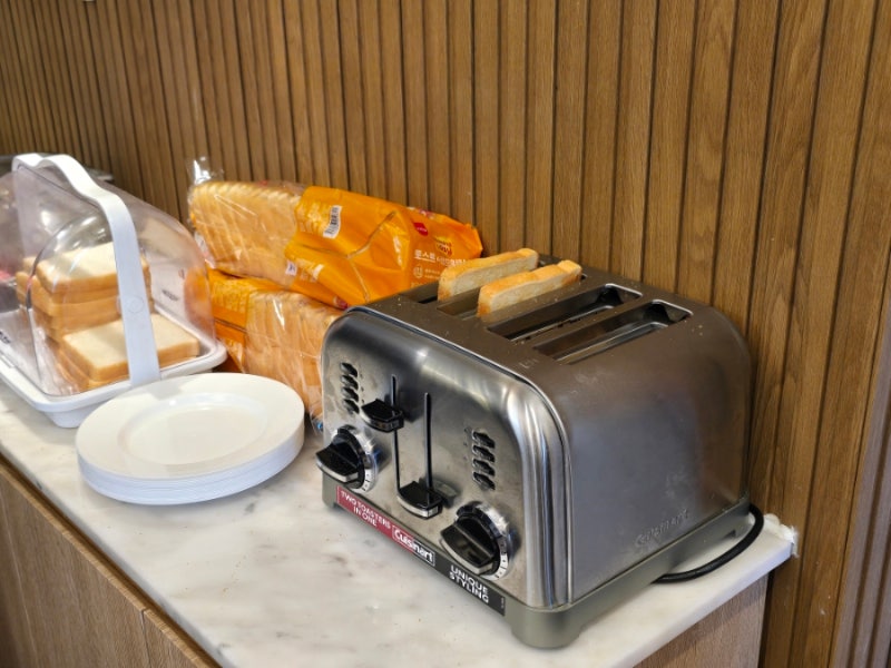 계란이랑 소시지, 햄을 부쳐서 먹을 수 있었고, 식빵 구워서 버터와 딸기잼을 발라 토스트를 해먹고 라면 제조기도 있어서 맘에 드는 라면 골라 땡초와 파 듬뿍 넣어 끓이기 😆