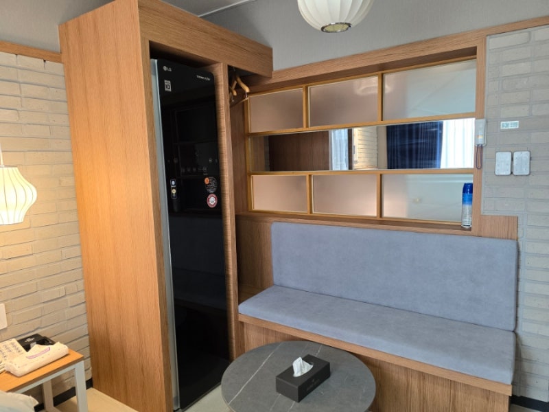 대박인건 객실 내부에 전자레인지가 있다는 것! 편의점에서 맛난거 사와서 해먹기 좋았다. 냉장고도 되게 큰 게 하나 있었다.