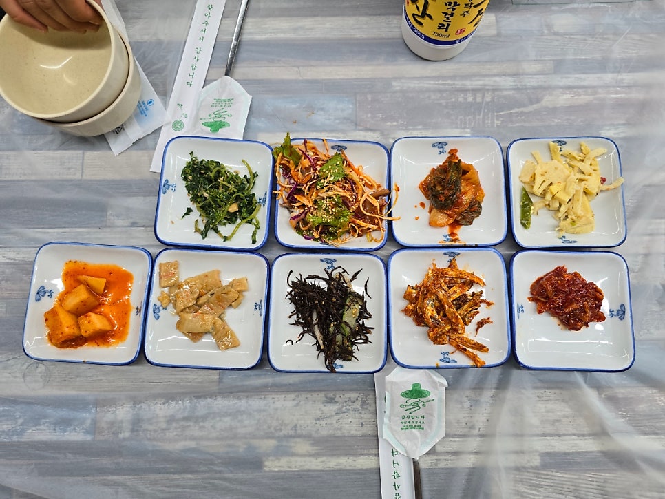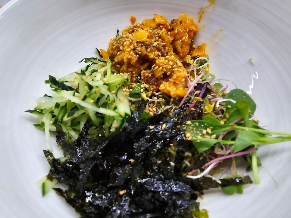 주문한 메뉴가 나오기 전에 밑반찬들이 쫙 깔렸는데, 다양하며 화려한 색감에 기분이 좋아졌다. 반찬 하나하나가 다 맛있었고 손이 계속 갔다.