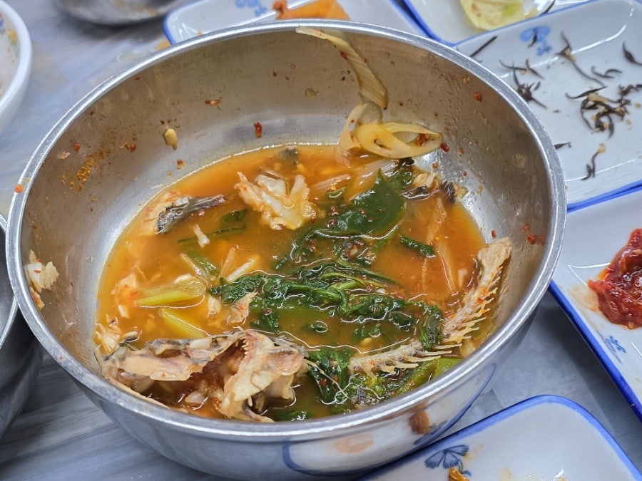 뽈락매운탕, 매운탕이야 배신 없는 맛이라서 아주 맛나게 먹었다. 생선살 슥슥 발라먹고 두부도 야무지게 쪼개 먹고 먹다보니 둘 다 빈그릇이 되었다.