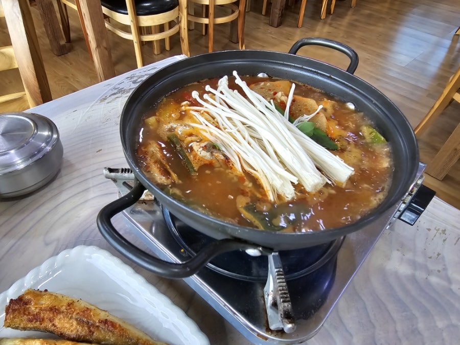 그리고 매운탕이랑 같이 내어주시는 생선구이도 항상 맛나다. 물회 시키면 셋 다 먹을 수 있어서 좋구만. 물회는 뼈가 혹시 씹히면 어쩌나 했는데, 그런거 하나도 없었다. 고소하니 맛나게 먹었다. 가자미 물회도 괜찮구만?