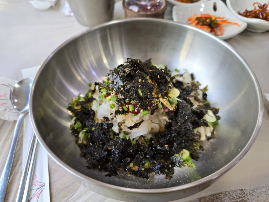 자연산 물회 먹으려고 했는데 저녁시간대 찾아갔는데 이미 오후 2시 즈음에 모듬 물회는 다 떨어졌다고 하셨다. 아까비 😭