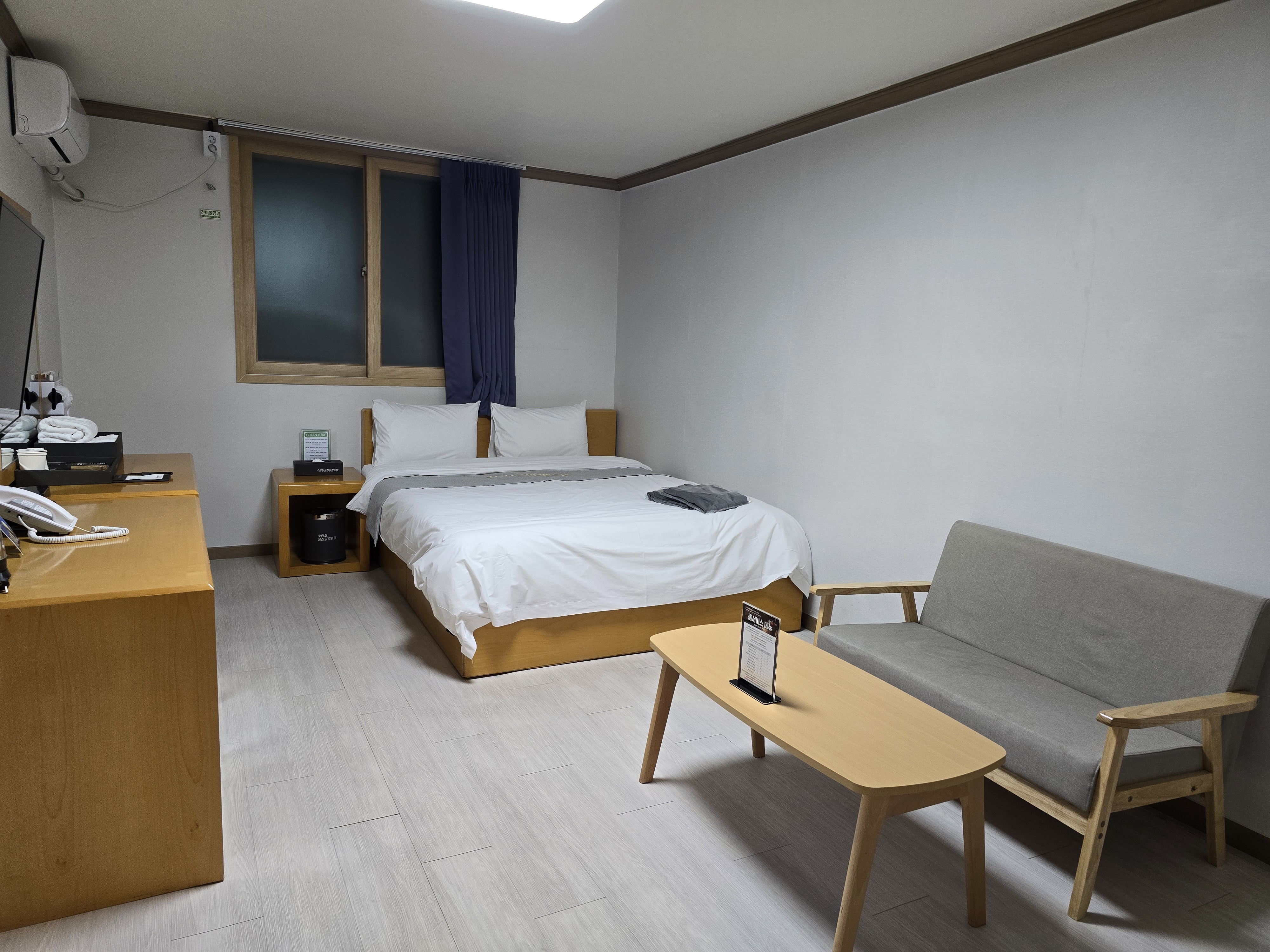 안으로 들어가니 꽤 넓었다. 두명이서 자기에 충분한 방이었다. 소파와 테이블도 있었고 창문이 달려있어서 환기도 잘 되었다.