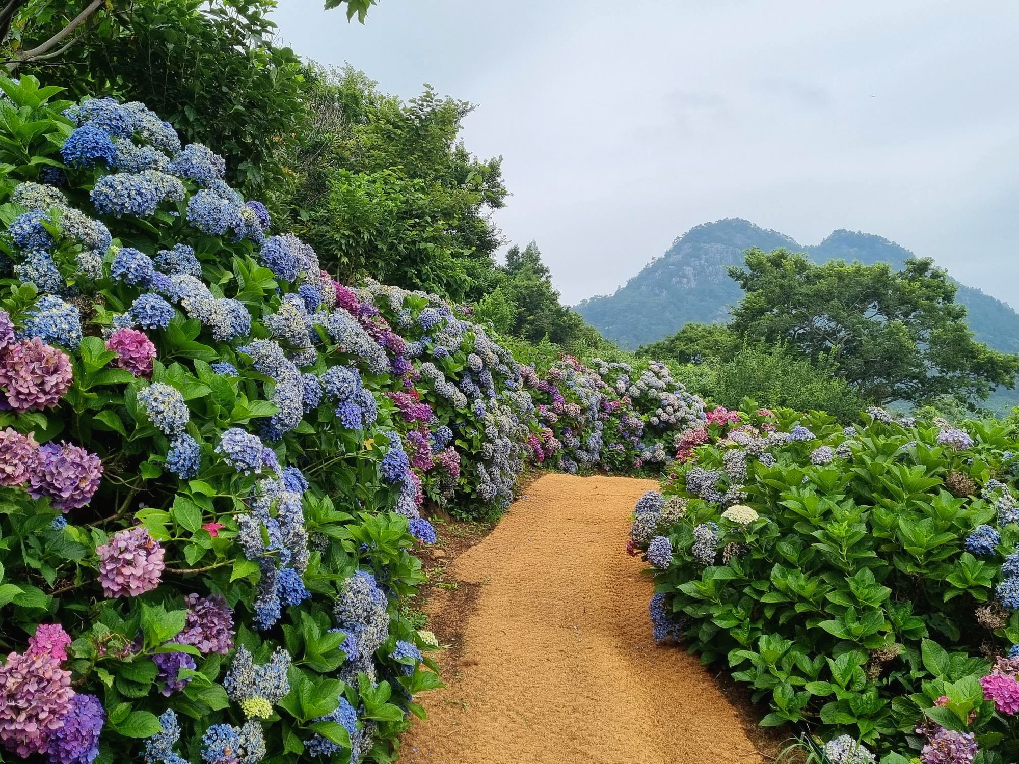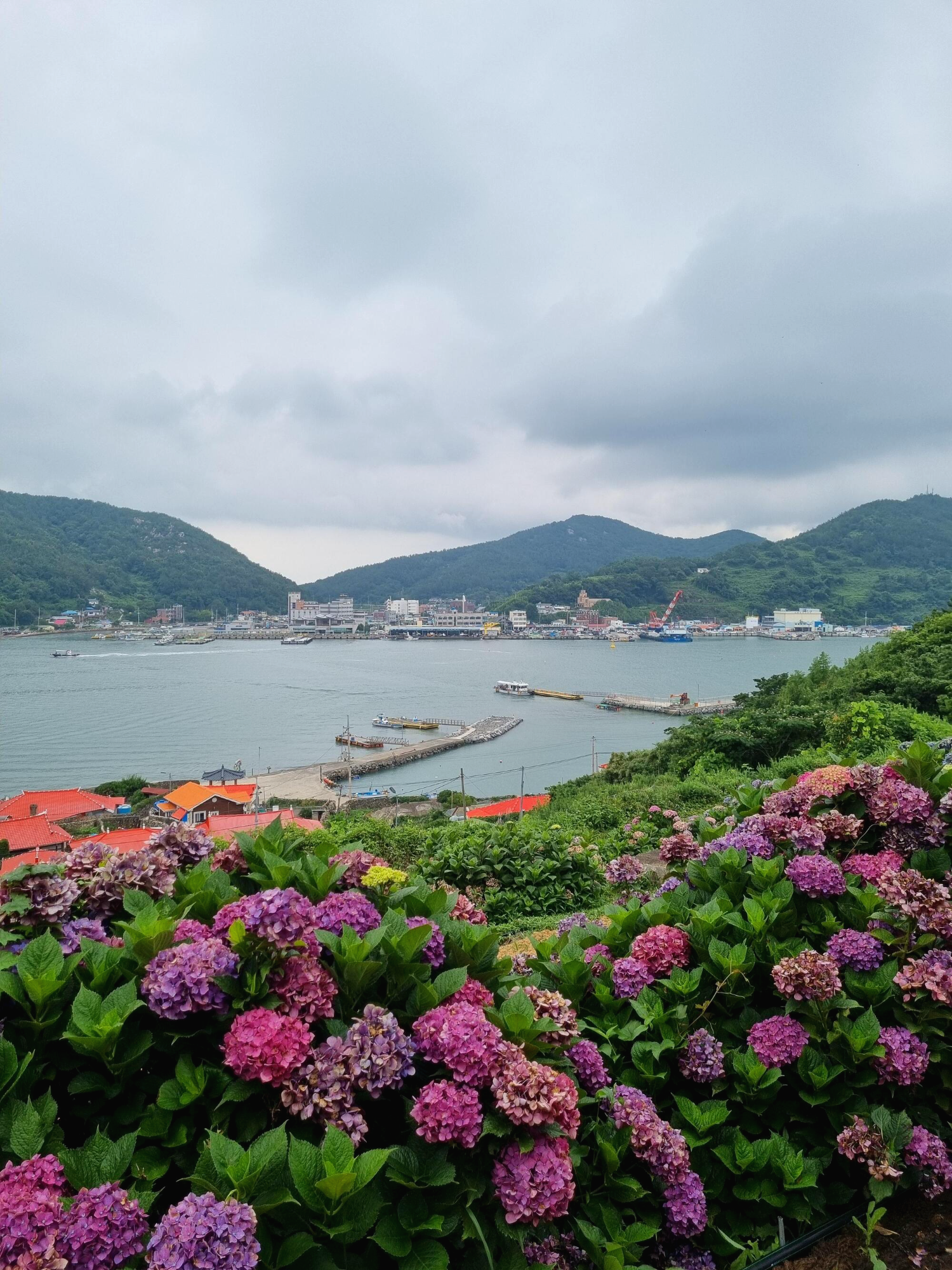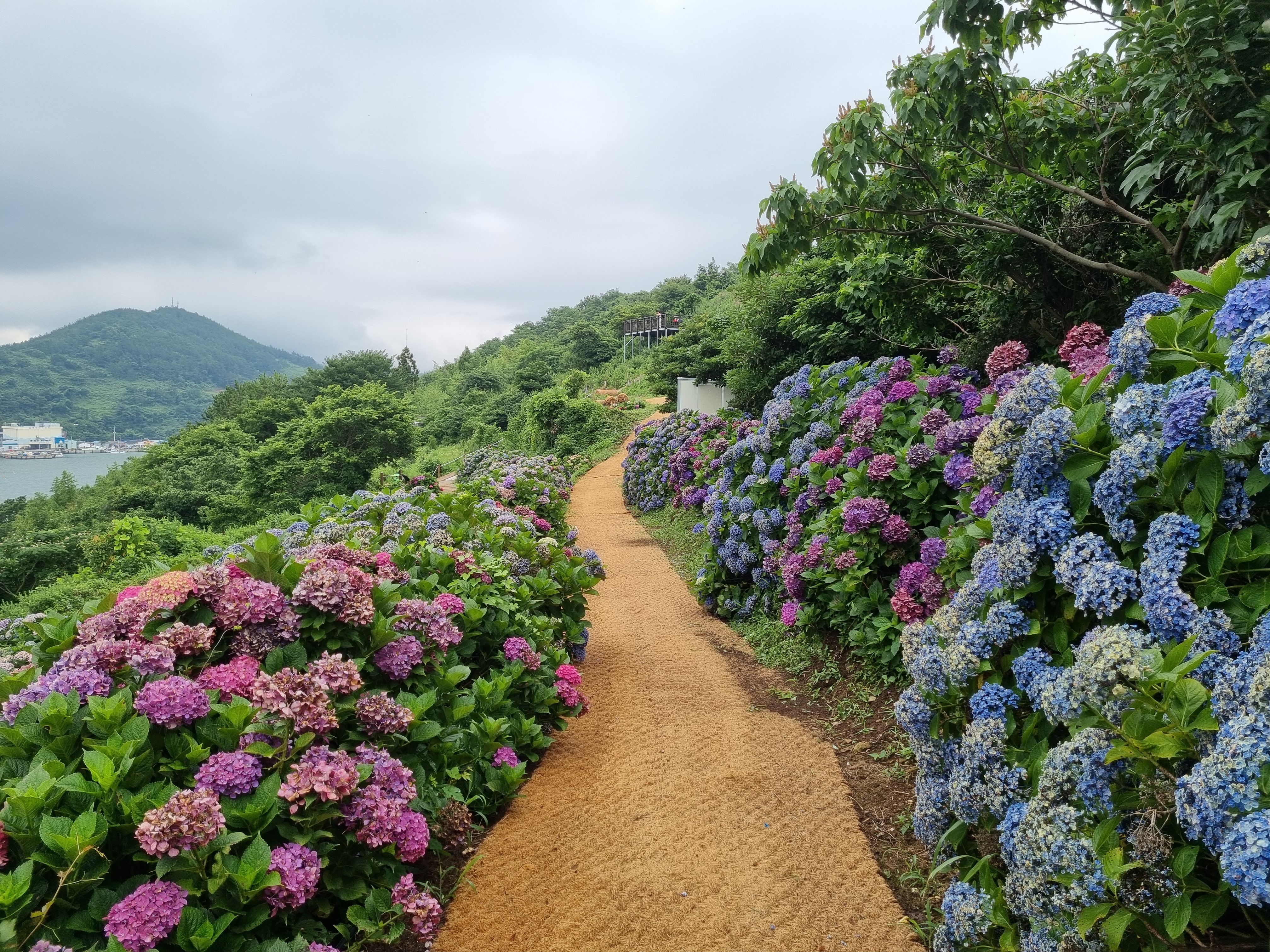 수국꽃 가득한 정원을 얼마나 돌아 보았을까? 생수통에 담긴 차가운 물은 동이 났다. 이제 정원을 떠나 점심을 먹으러 식당으로 갈 시간이다. 식당에서 배를 든든하게 채운 뒤에 난대림부터 시작해 쑥섬을 한 바퀴 돌아보기로 했다. 가끔씩 불어오는 바닷바람이 어찌나 달게 느껴지던지, 정말 덥고 더운 여름이지만 수국이 있어 즐겁다.