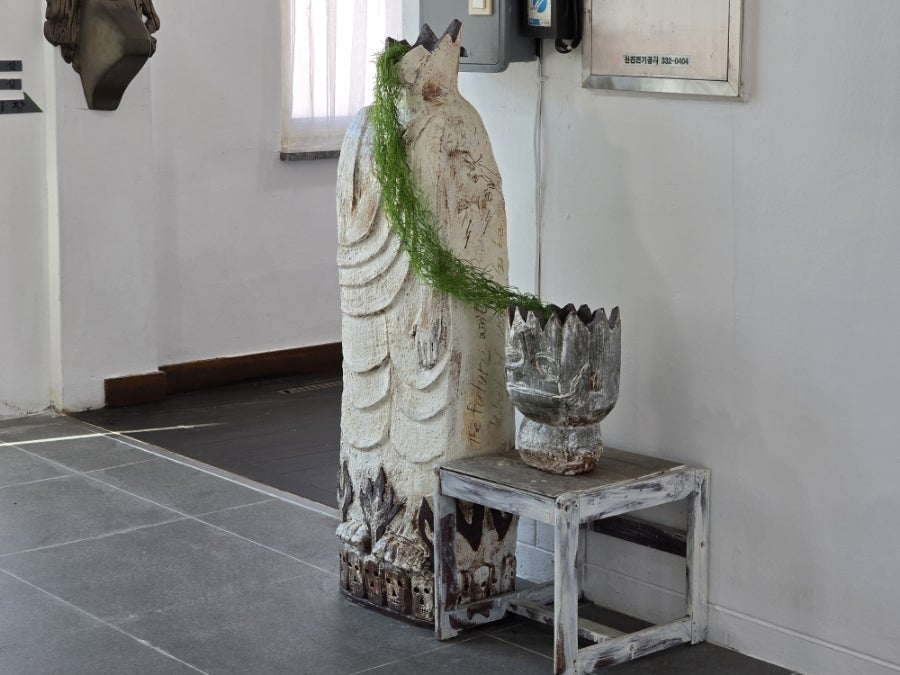 조각상들이 전시된 야외 공간을 지나서 카페 안으로 들어갔다. 매표소에 따로 사람이 없어서 카페에서 매표를 해야했다. 성인 1명당 5천원의 입장료를 내고 전시 공간으로 들어섰다.