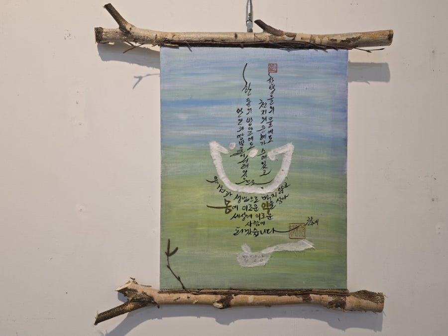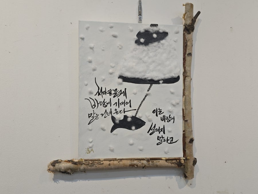 마음에 드는 책들과 시들은 사진 속에 기록으로 남겨 두었다. 공간마다 다른 컨셉으로 전시가 되어 있었는데, 시와 책들이 놓인 공간 다음에는 서예 작품들이 전시되어 있었다.