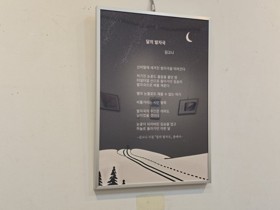 평창의 작가들의 작품들이 전시되어 있던 공간. 평창의 작가들이 쓴 소설책들을 읽거나 구매할 수 있었고, 벽에는 시들이 걸려 있었다.