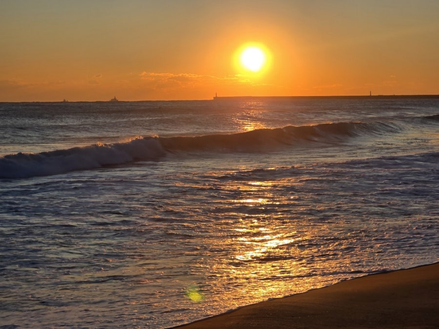 바람이 많이 부는 날이라 파도가 거칠게 몰아 쳤다. 세차게 왔다 갔다 거리는 파도 너머로 붉은 해가 떠오르기 시작했다. 거친 파도와 달리 해는 아주 곱게, 부드럽게 솟아 올랐다. 휘몰아치는 파도 소리와 가끔 들리는 갈매기 소리, 그리고 웅웅거리는 바람소리만 들려오던 바다. 갓 떠오르는 태양 앞에서 숨을 들이마쉬니 어찌나 상쾌하던지.