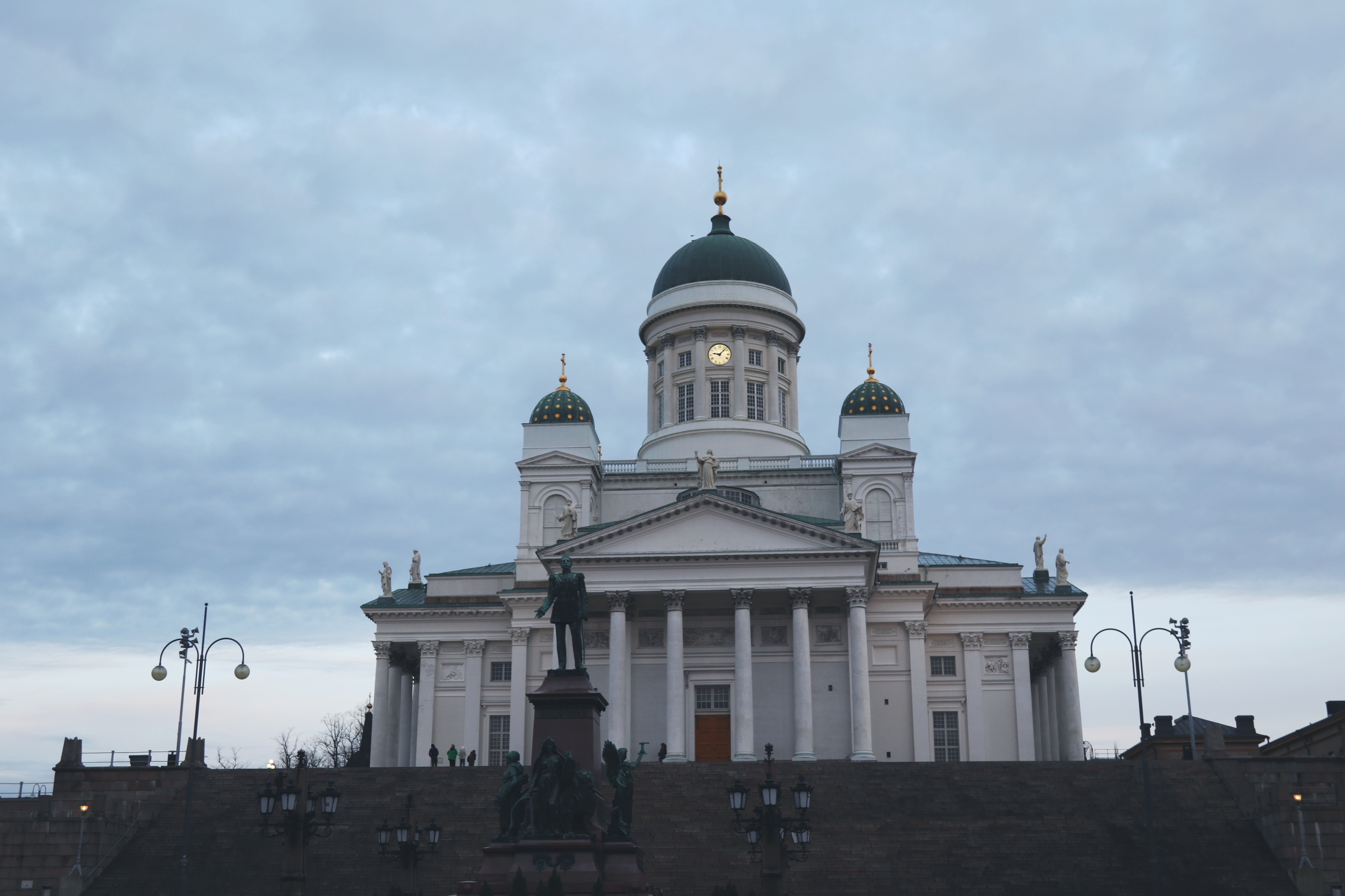 어제 잠깐 스치듯이 지나쳤던 헬싱키 대성당을 다시 찾아왔다. 하얀 성당 위로 구름이 짙게 깔려 있었다. 해가 뜬 것 같았지만 세상은 아직 뿌연 안개가 낀 듯이 침침했다.