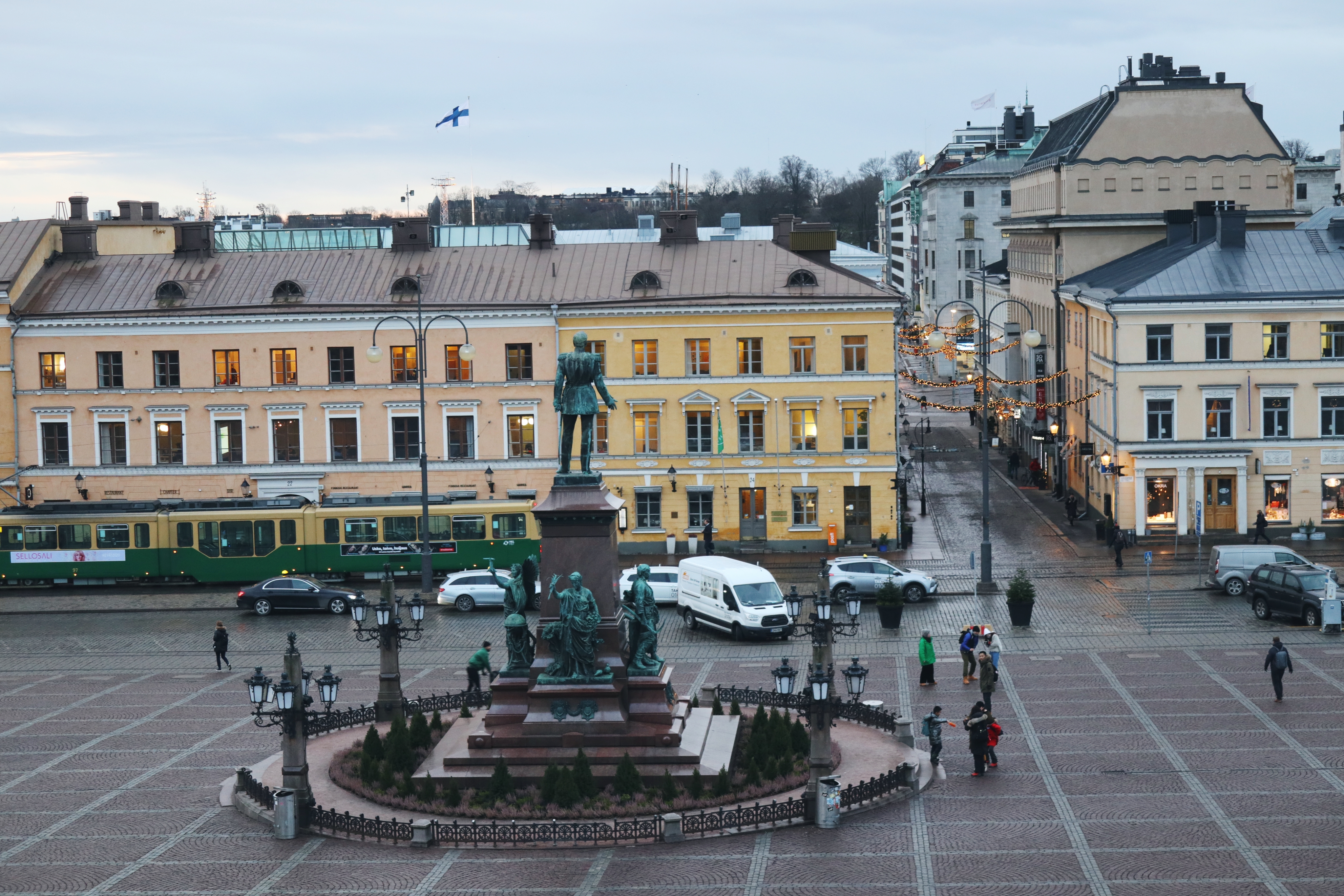 헬싱키 대성당 계단 위에 올라서면 네모난 광장이 내려다 보인다. 원로회 광장이라 불리는 곳인데 바닥에 40만개의 화강암이 깔려 있다. 광장 주변으로 헬싱키 대학과 대통령 관저 건물이 있고 한가운데에는 러시아 황제 알렉산드르 2세의 조각상이 서있다.