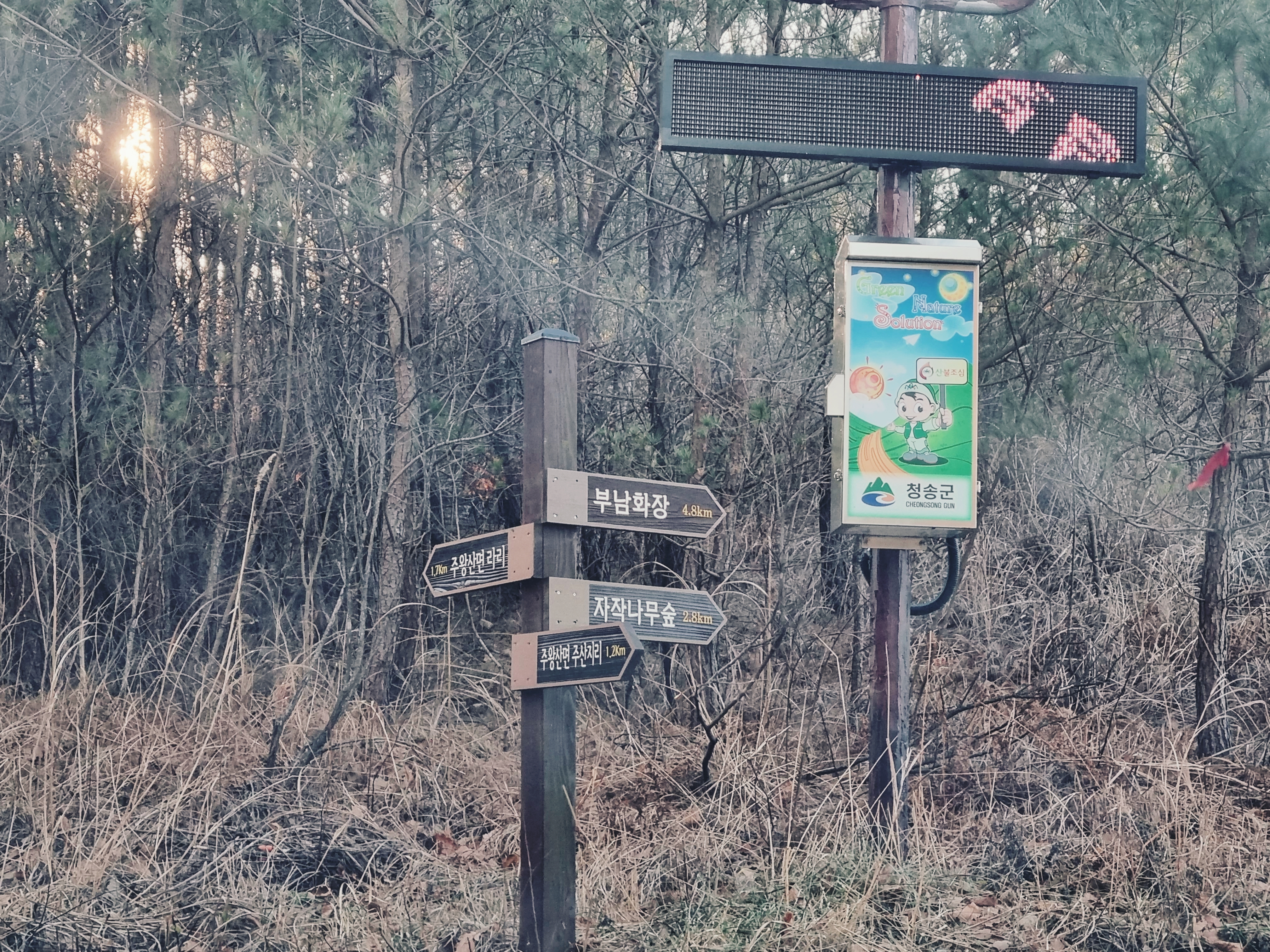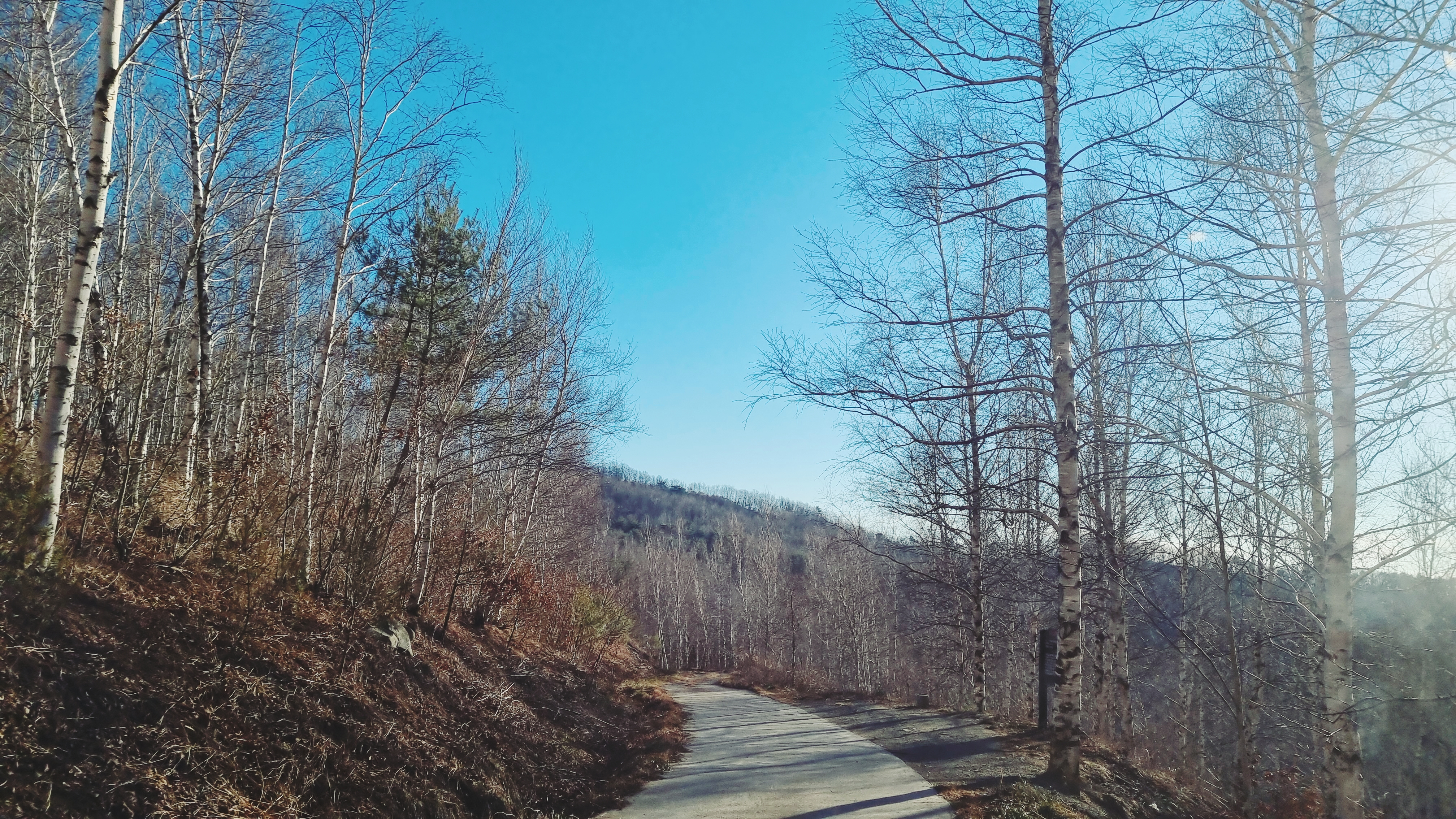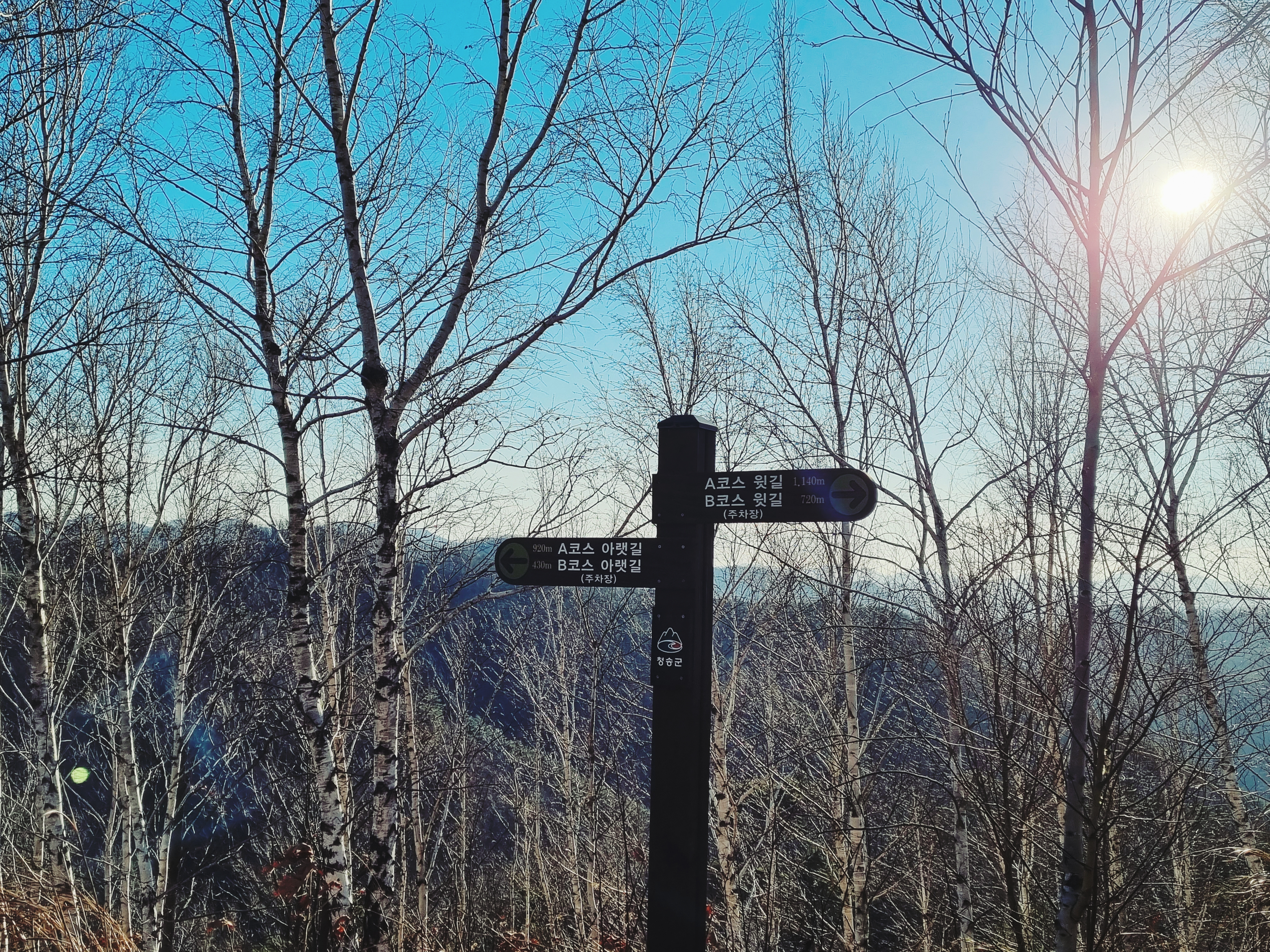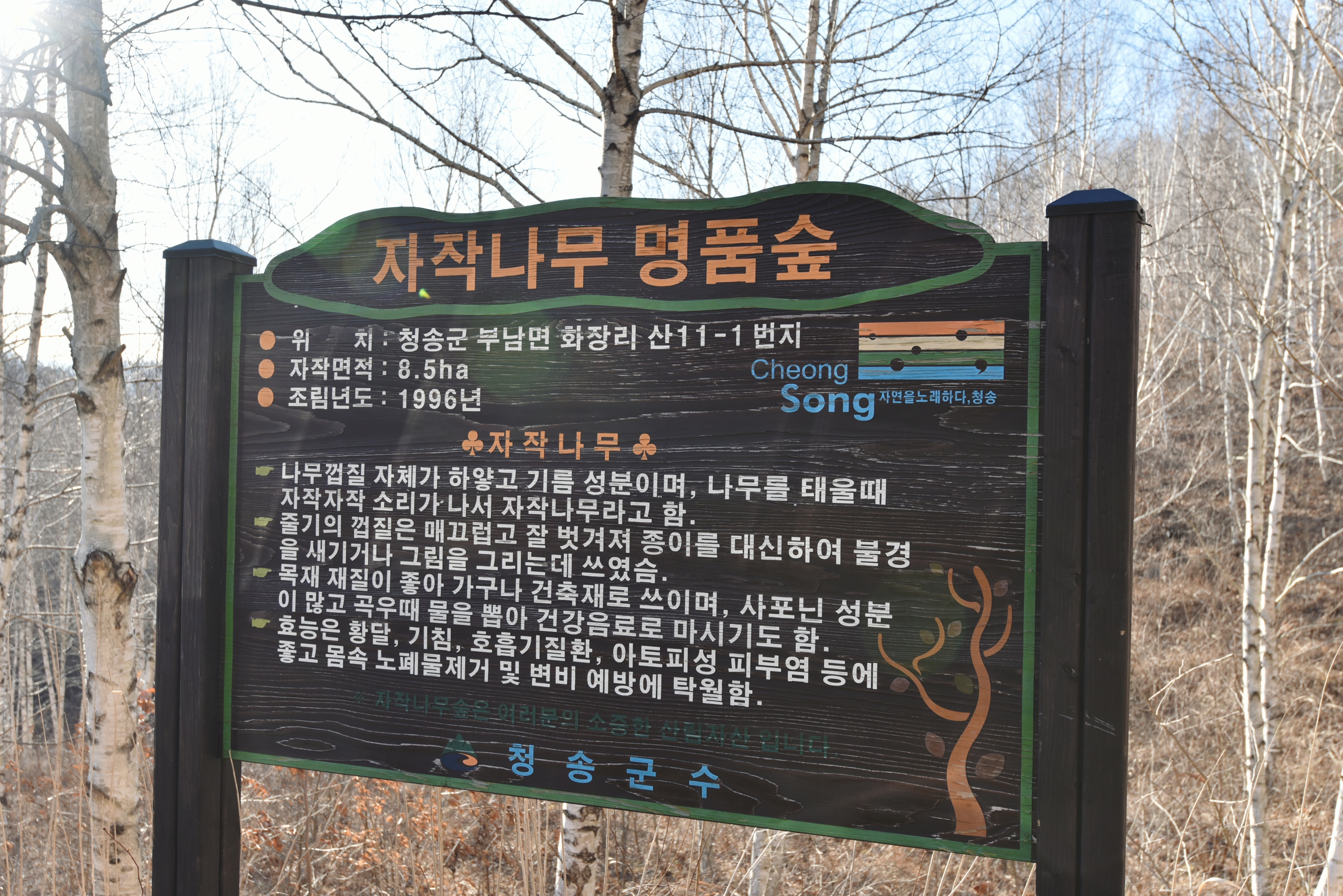 조성연도가 1996년이니 이곳은 25년 정도 된 자작나무 숲이었다. 산책길이 나있었는데 우리가 차를 멈춰세운 곳에서는 모두 내리막길이었다. 아래로 내려가면 올라와야 했기에 우리는 산책코스 시작점에서 서성이며 자작나무들을 구경했다. 날이 너무 추웠던지라 밖에 오래 서있기 힘들 정도여서 멀리 가지 않기로 했다.