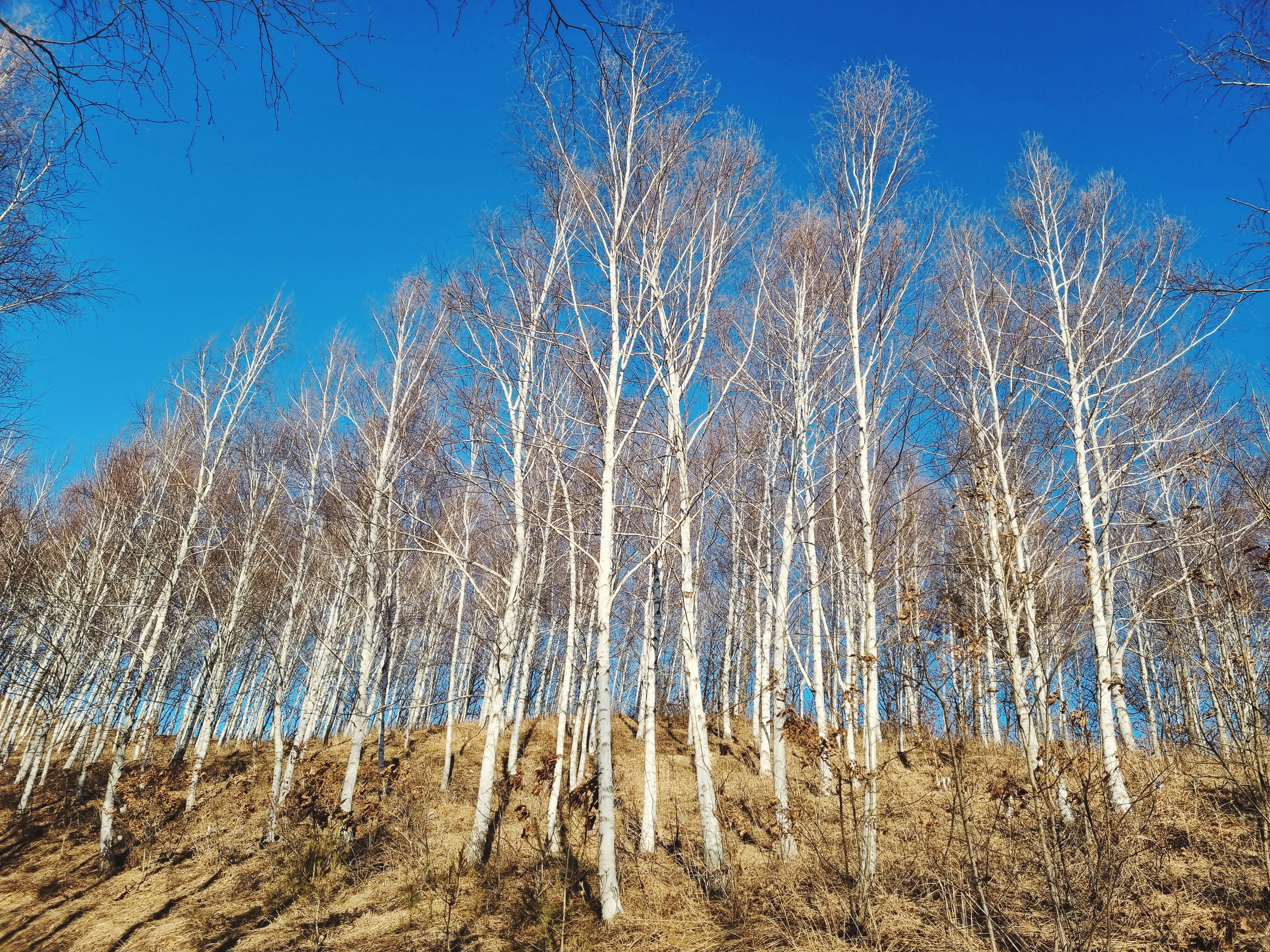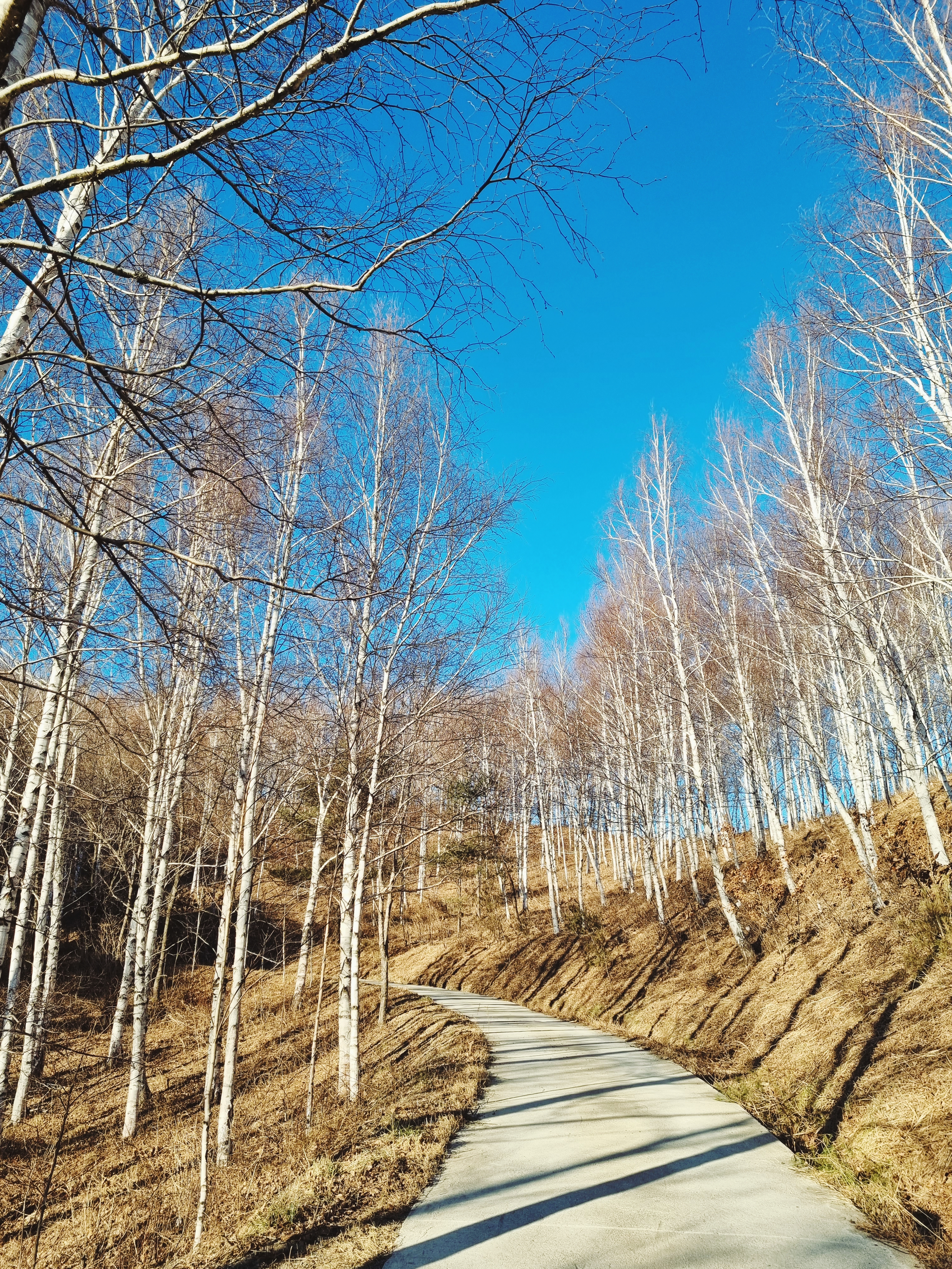 하늘이 어찌나 푸르던지 파란 융단을 깔아 놓은 것처럼 곱게 보였다. 그런데 맑고 고운 하늘과 달리 추위는 매서웠다. 윙윙- 바람 소리가 무섭게 들리고 얼굴이 아려올 정도로 추웠다. 왜 이렇게 사람이 없는가 싶었는데 알 것도 같았다. 이리도 추운날 굳이 자작나무 숲을 찾아온 우리도 참 대단하다 싶었다.