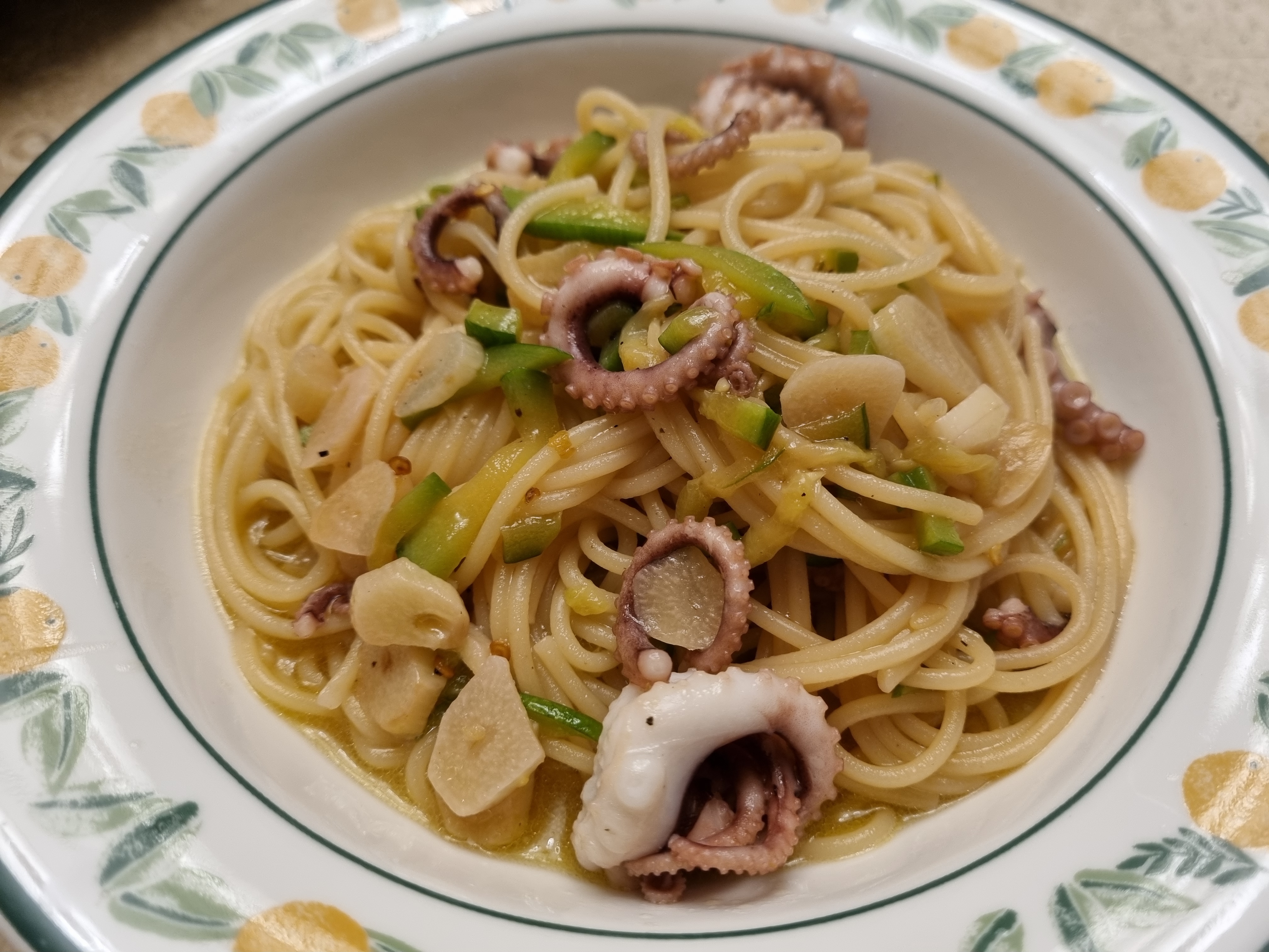 달고기로 만든 빠삐요뜨와 낙지를 넣은 알리오 올리오.