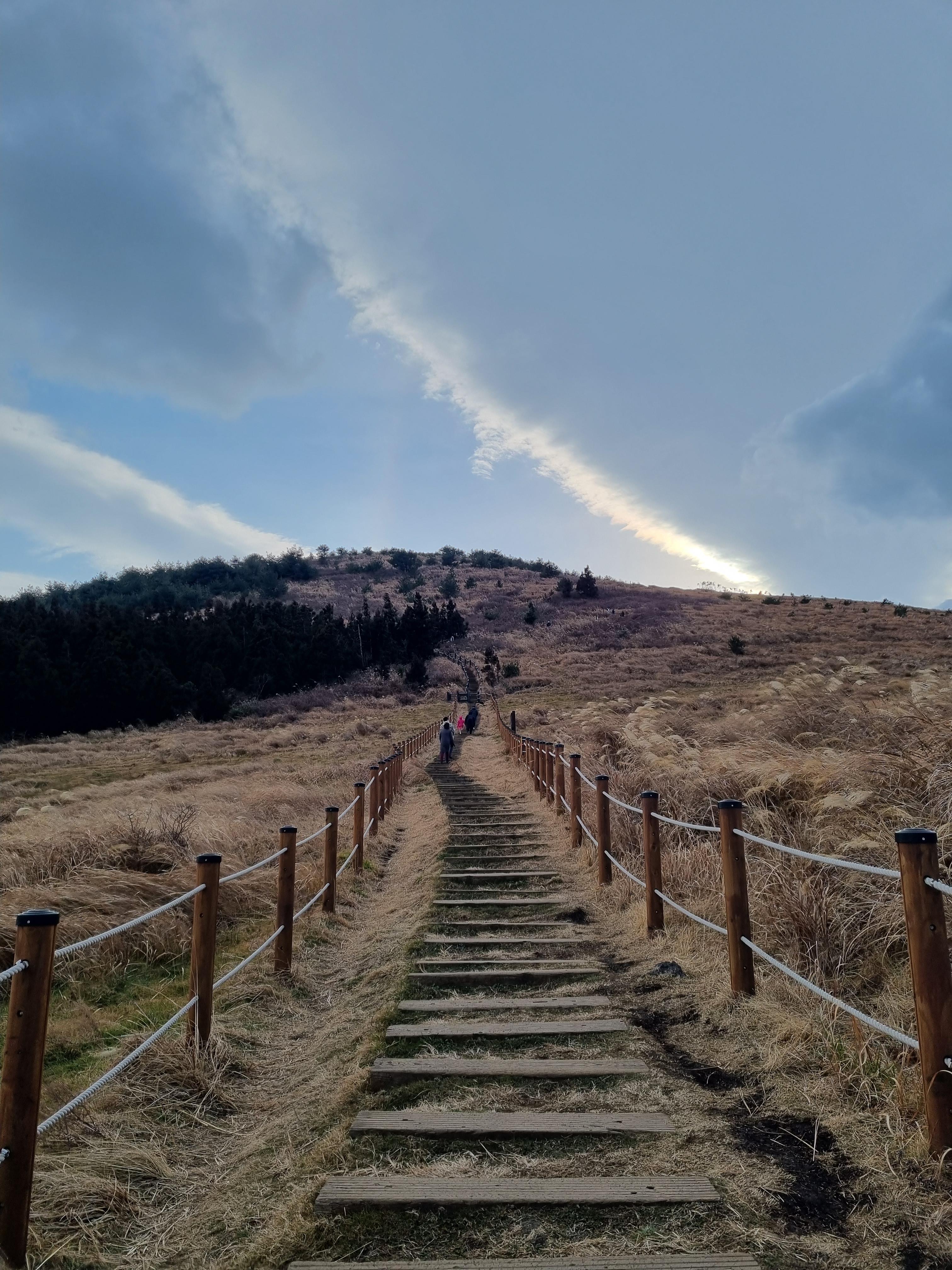 촘촘하게 이어진 나무 계단을 따라서 멀이 보이는 언덕의 끝을 향해 올라 갔다.