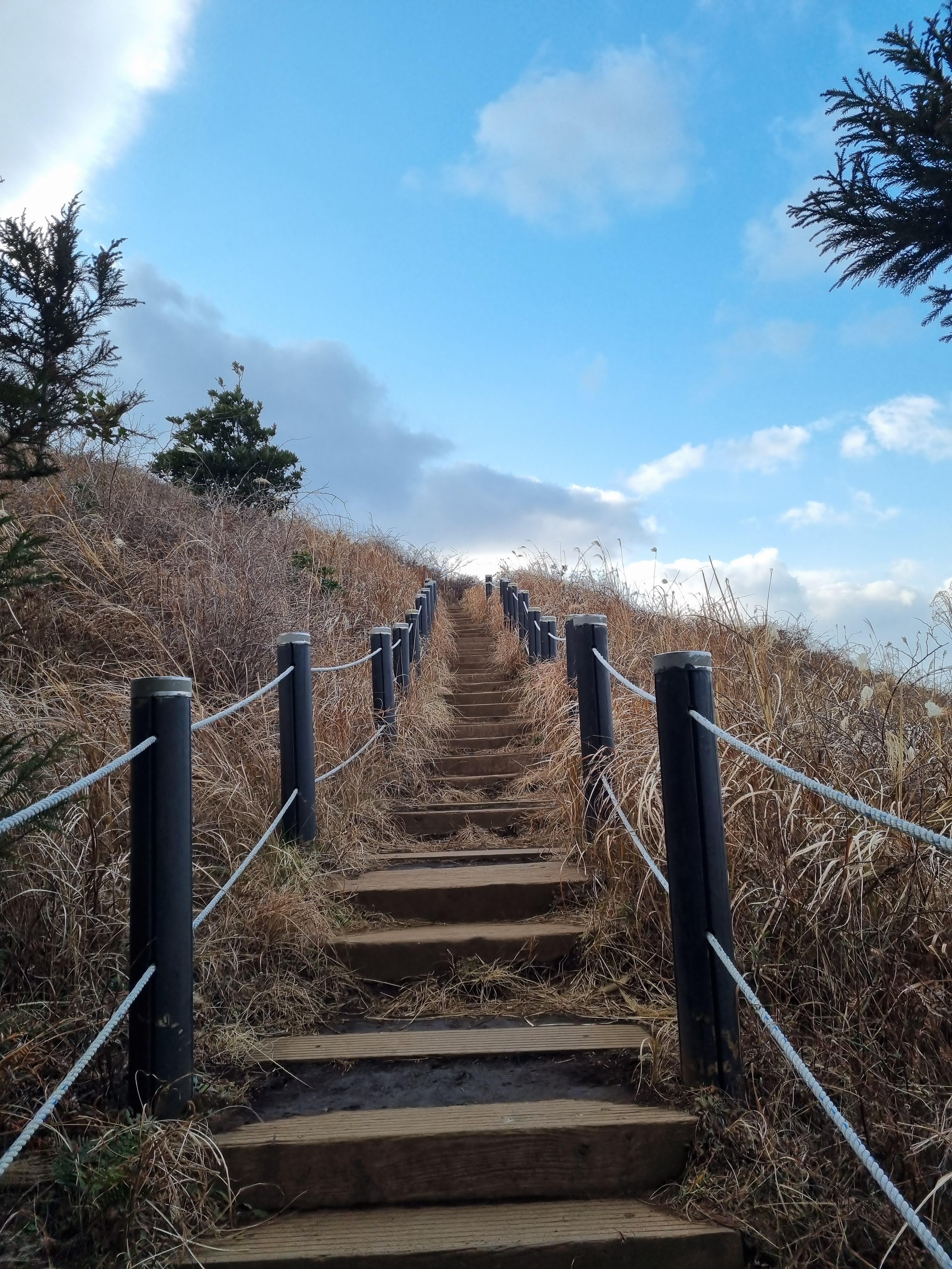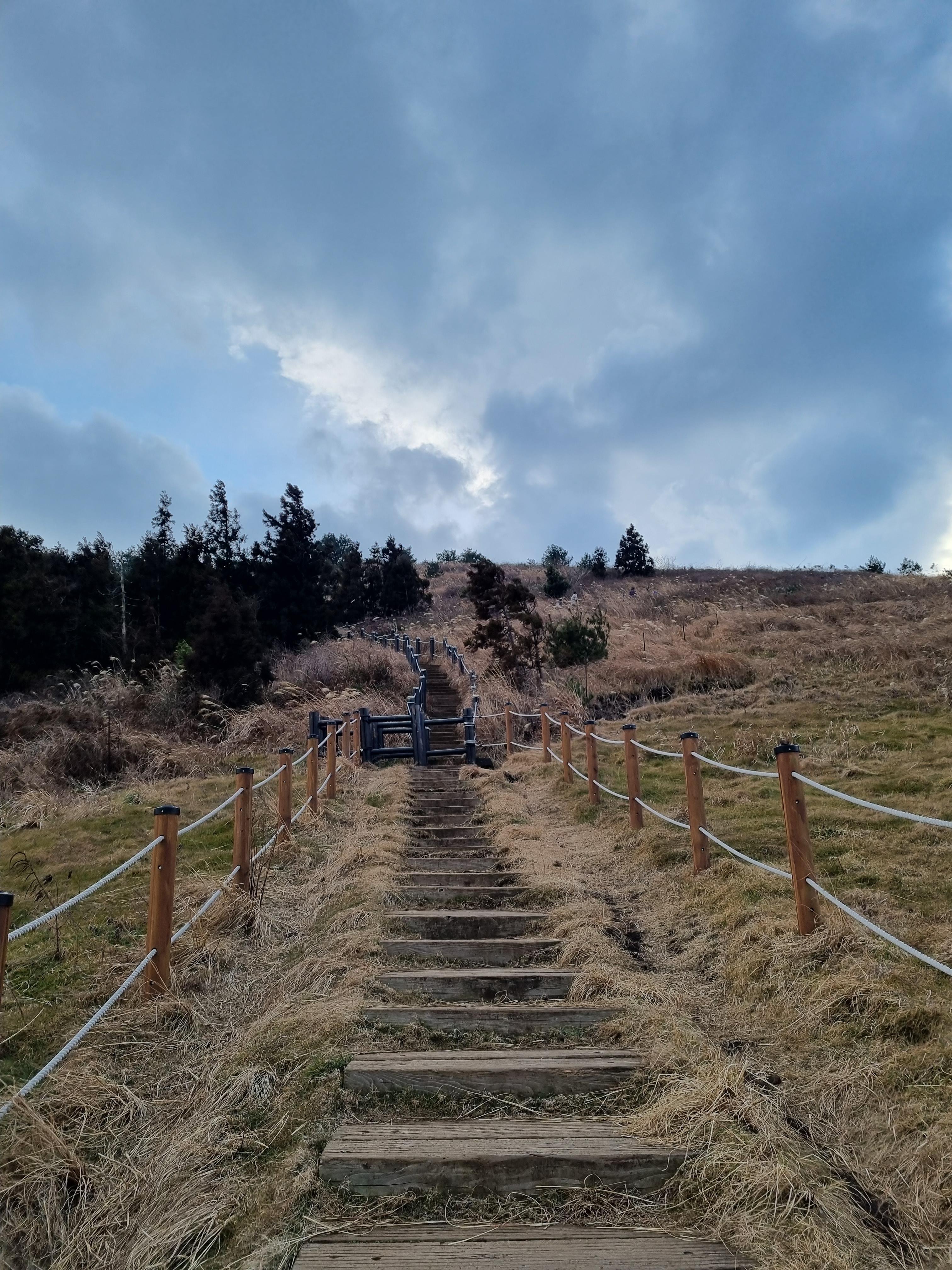 계단을 한참 오르다가 보면 이제 멀리 오름들이 한눈에 보이기 시작했다.