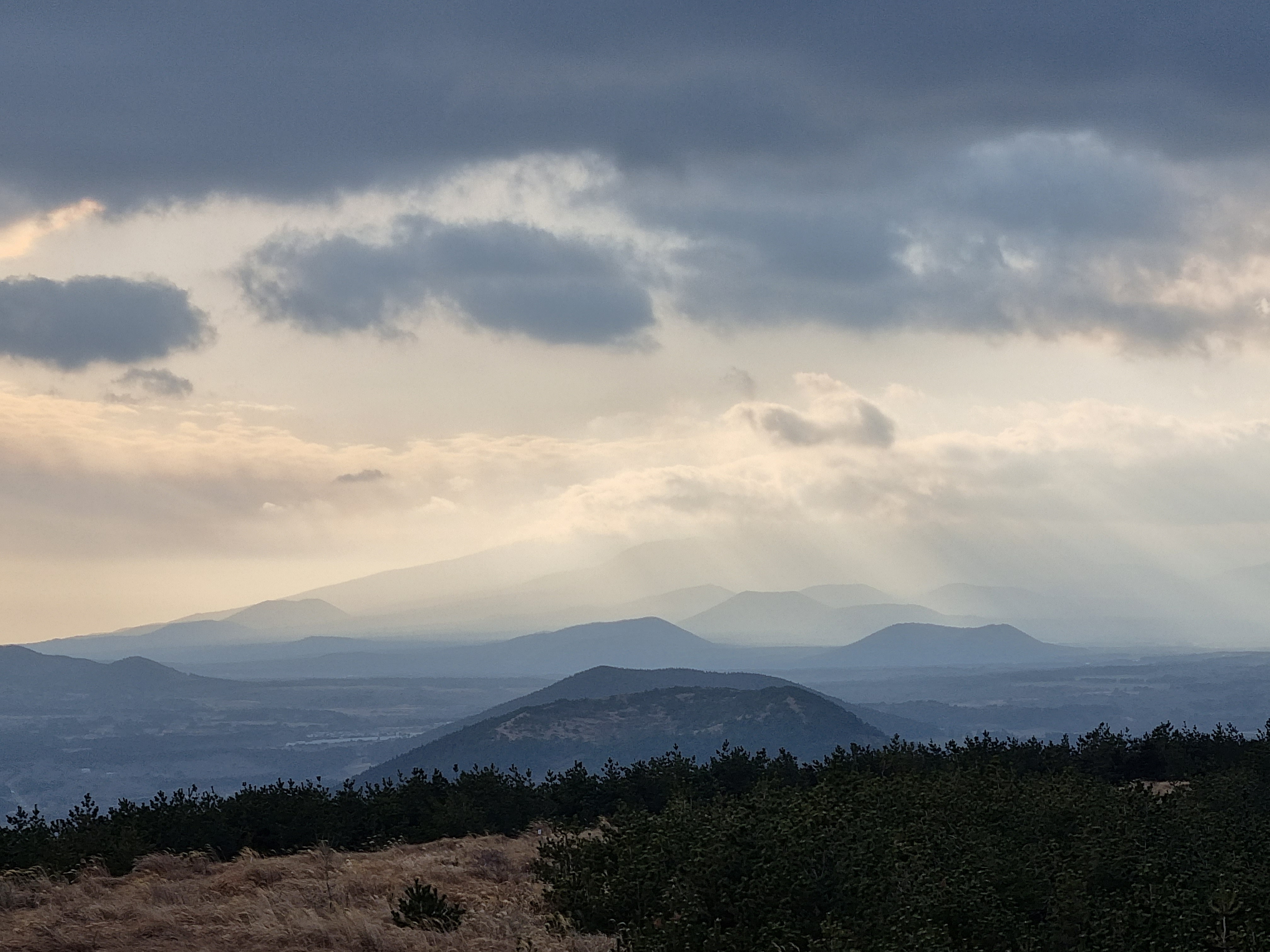 한라산과 오름들이 실루엣들이 신비롭게 눈앞에 펼쳐졌다.