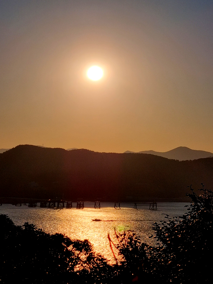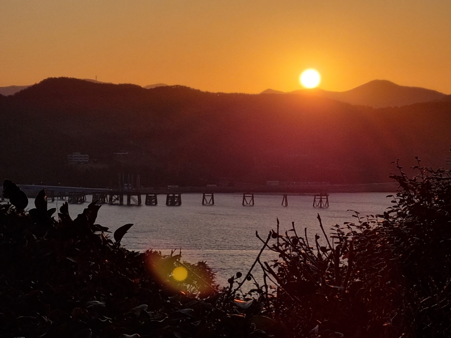 숙소에서 보이는 바다 위로 해가 떨어지고 있었다.