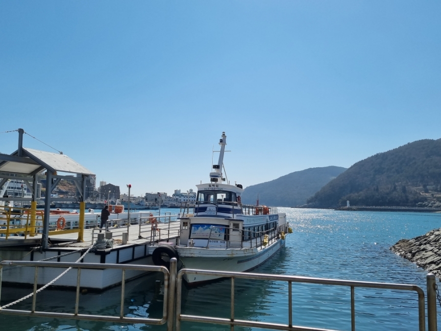 시간 맞춰서 배를 기다리다가 배를 타고 지심도를 향했다. 장승포항에서 지심도까지는 15분 정도 걸렸던 것 같다.