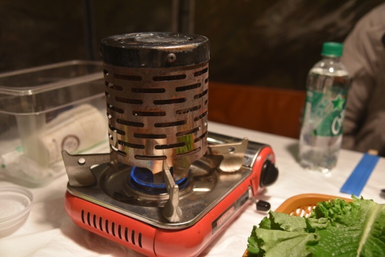 비닐을 열고 안으로 들어가면 가스로 열을 쬘 수 있는 작은 히터가 있었다.