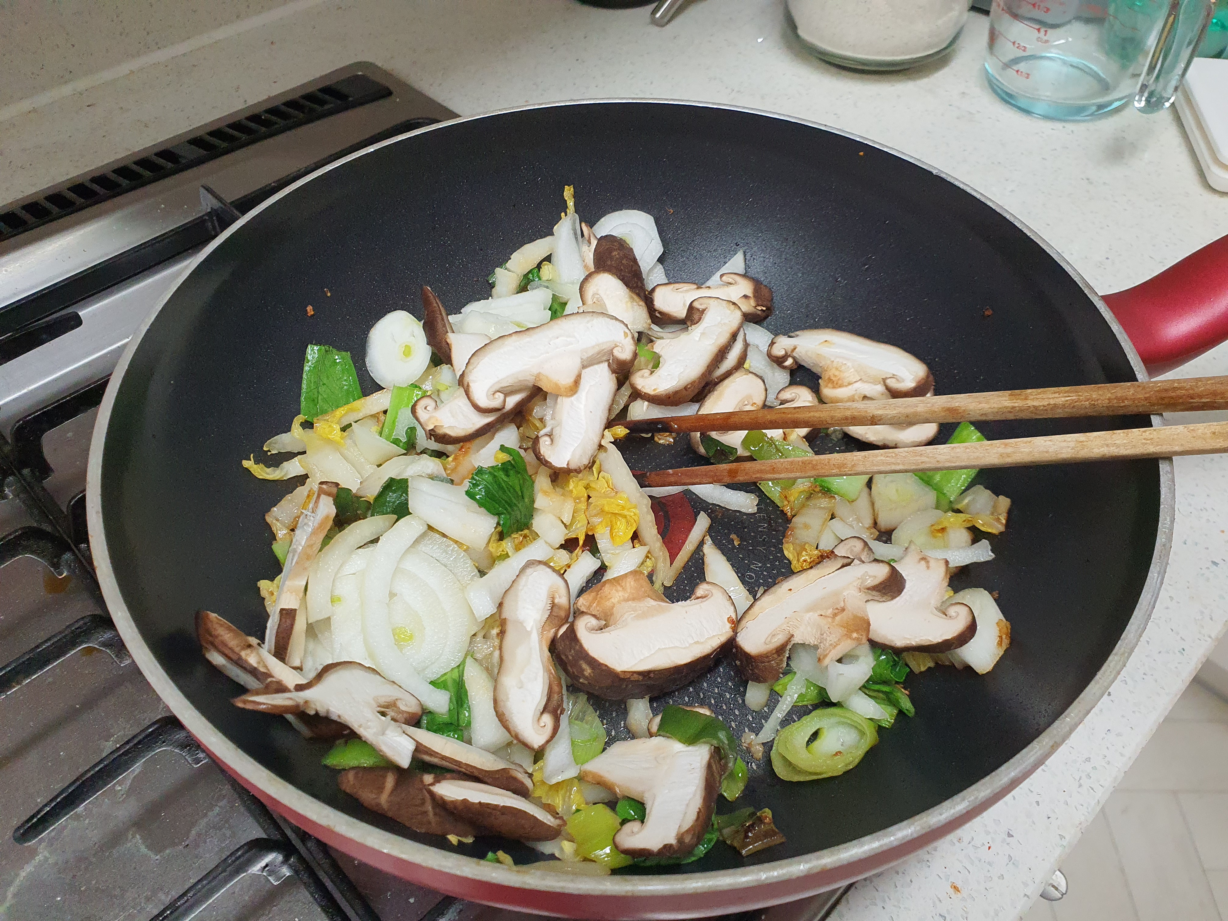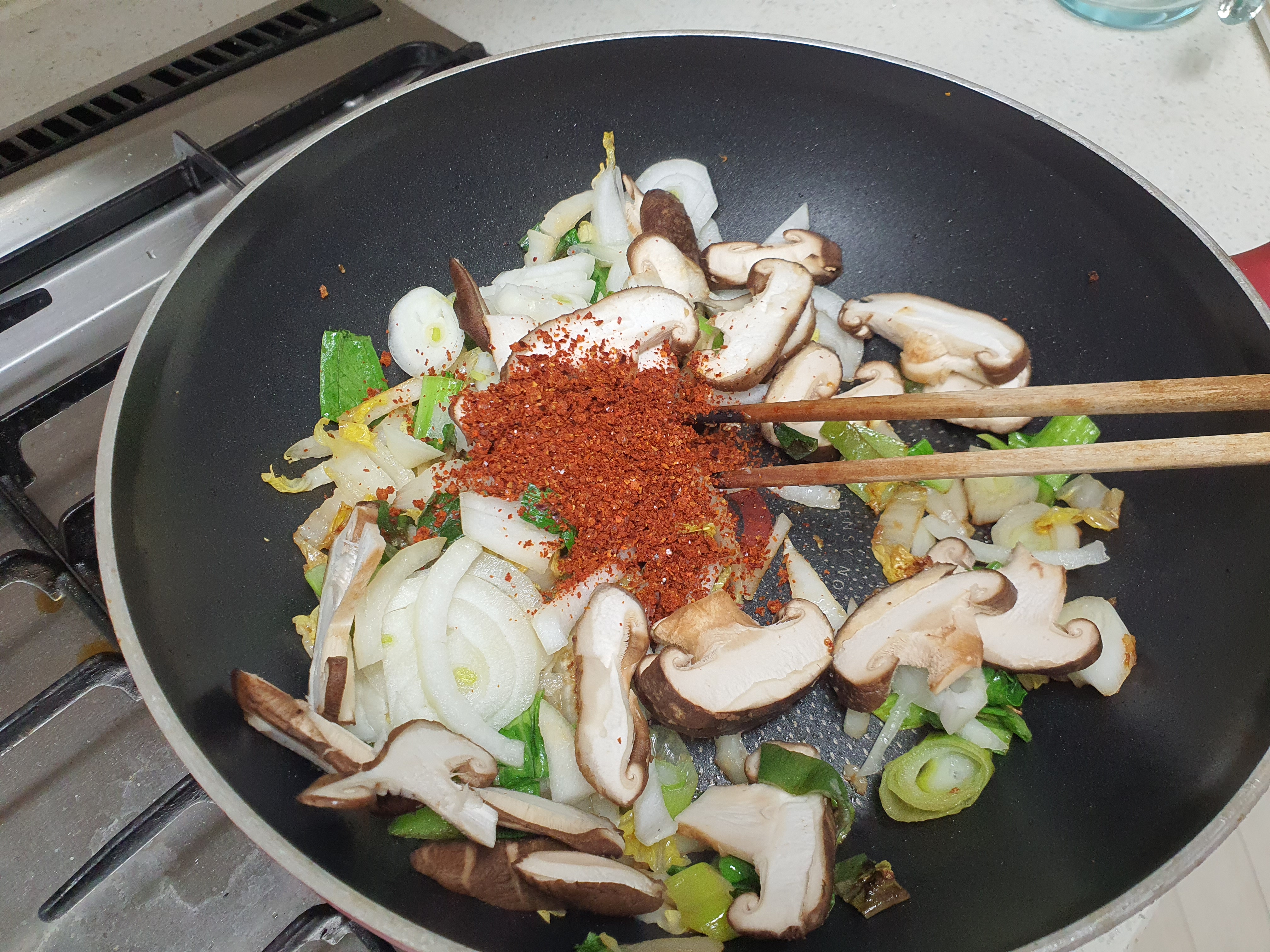 매운맛이 부족해서 고추가루 1T정도 더 넣고 냉동실에 있던 정체불명의 잘라놓은 고추 적당량 (1개정도 분량) 넣었다.