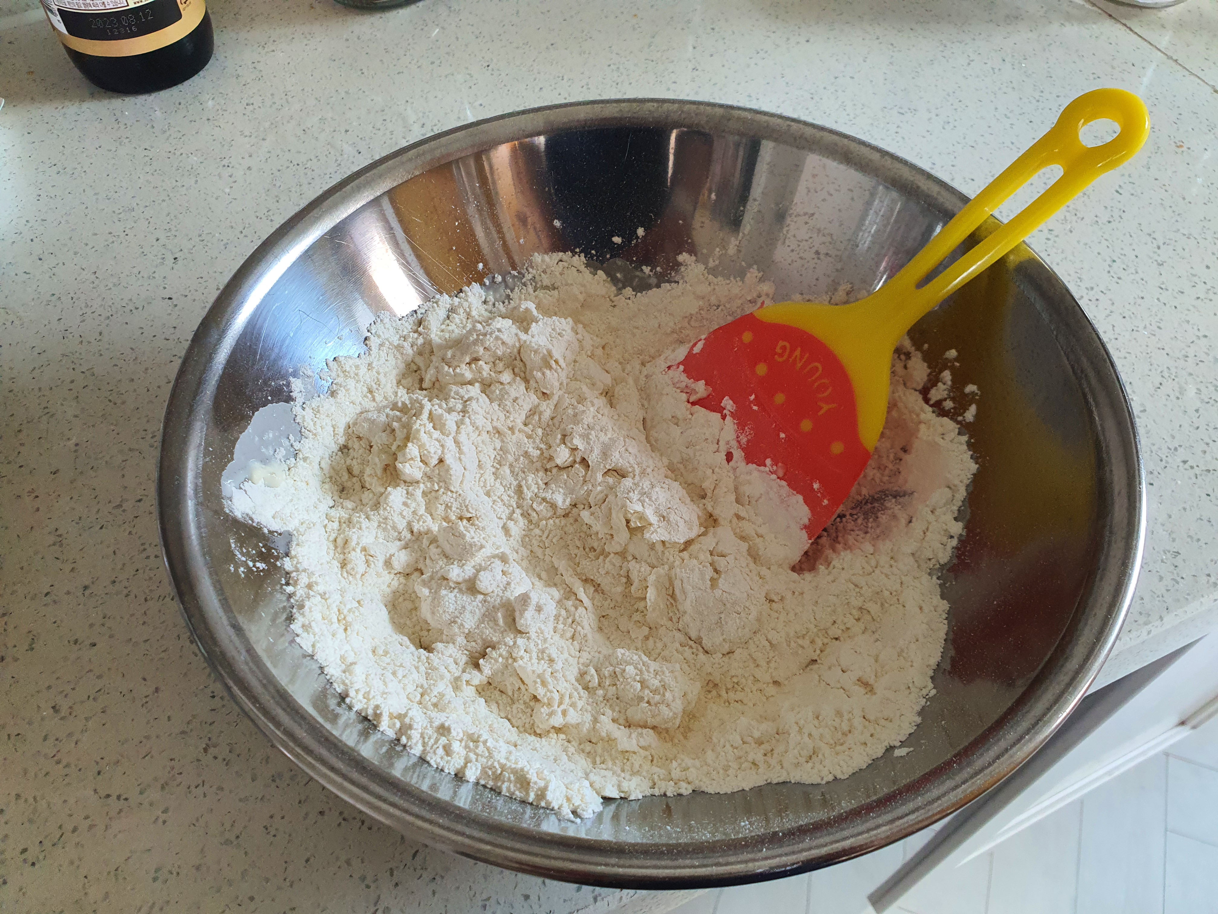 중력분과 물을 적당히 혼합해준다 (물은 조금씩 넣어가며 되기를 맞춰준다. 밀가루양과 물양은 해보시면서 취향따라 맞추시면 될것같아요)