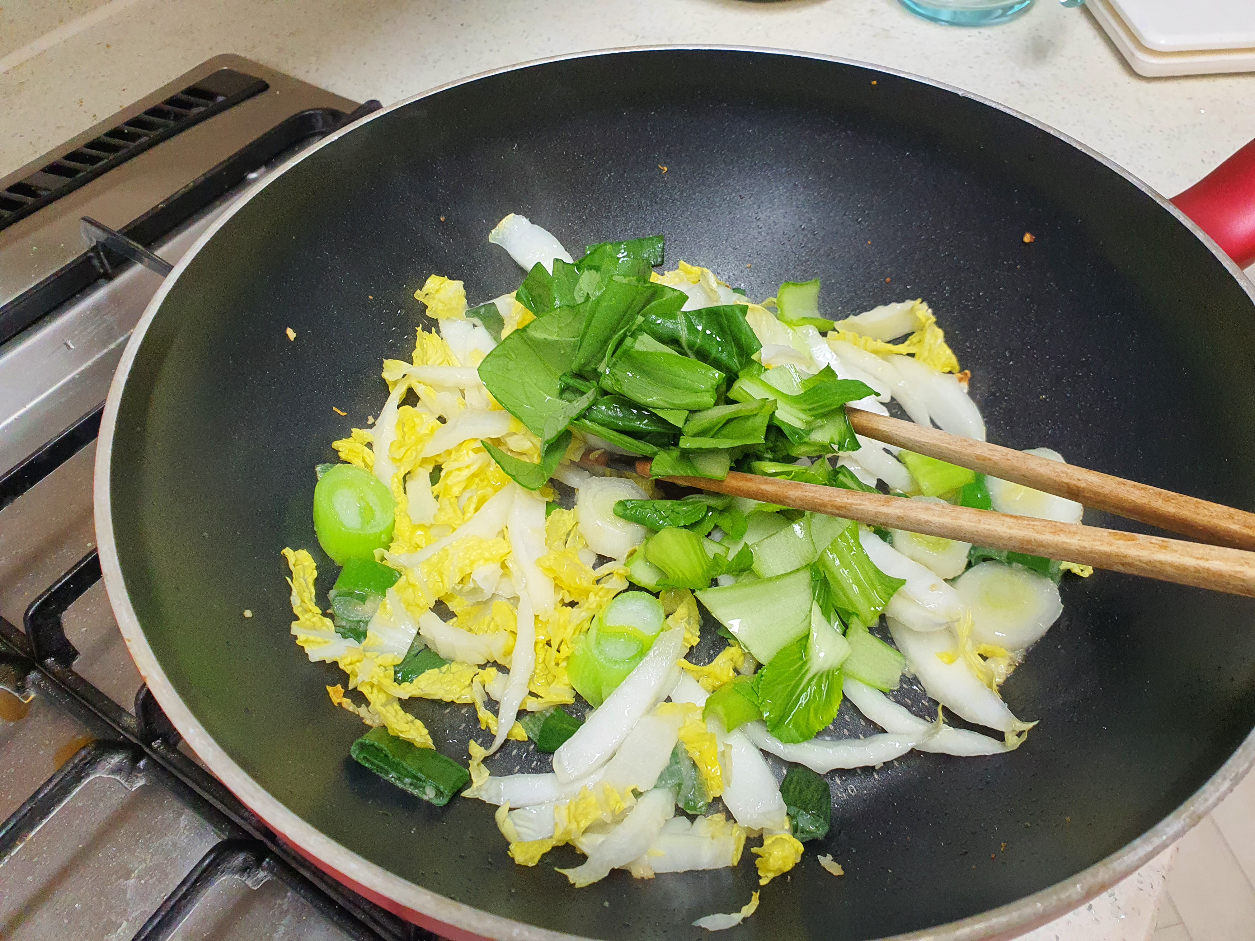 백종원 짬뽕집 마냥 배추는 얇게 썰어주었다.