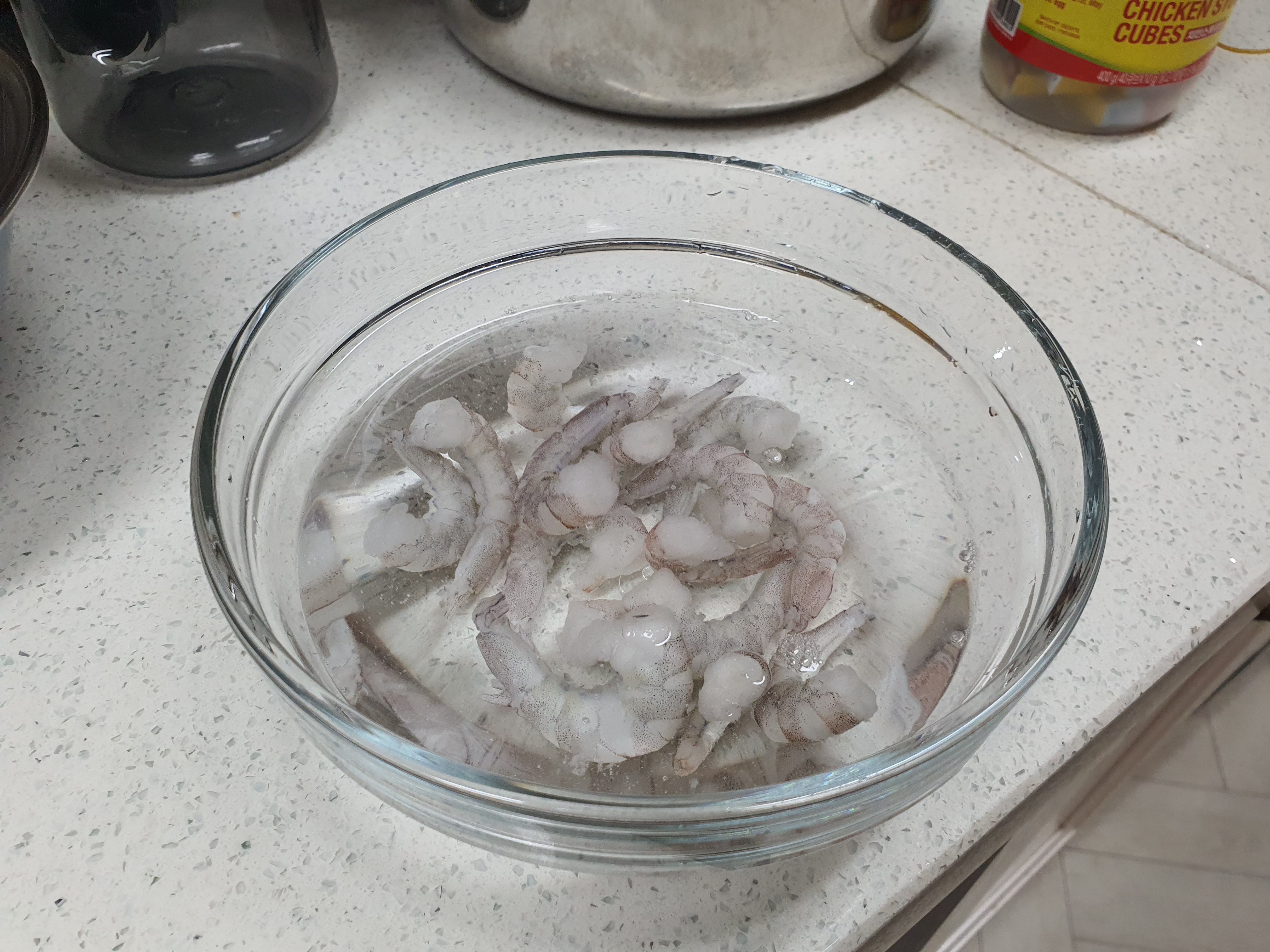 노브랜드에서 산 꼬리없는 냉동새우 물에 미리 해동시켰다. 볶으면 엄지손톱만큼 엄청나게 작아지더라.. 다음엔 꼬리포함된 냉동새우 사야겠다.