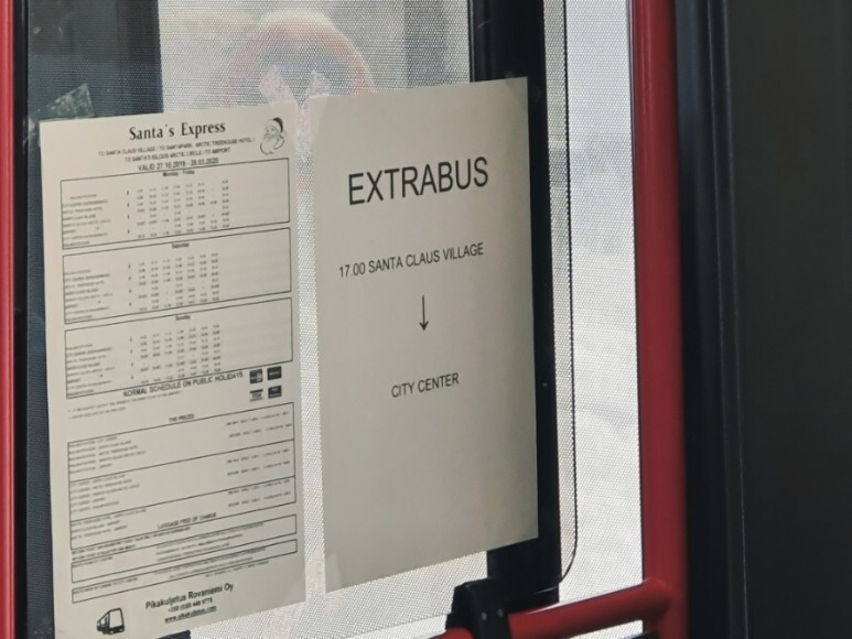 바리바리 짐들을 잔뜩 들고서 이제 로바니에미 산타마을에 있는 숙소로 가야했다. 버스를 어디서 타야할지 몰라서 한참을 헤맸었다. 구글 지도 앱이 표시된대로 갔지만 버스 정류장이라는 어떤 표식도 없어서 불안했다. 그렇게 거리를 배회하다가 택시를 타야할까 고민하던 와중에, 정말 신기하게도 빨간 산타클로스 익스프레스 버스를 마주치게 되었다.