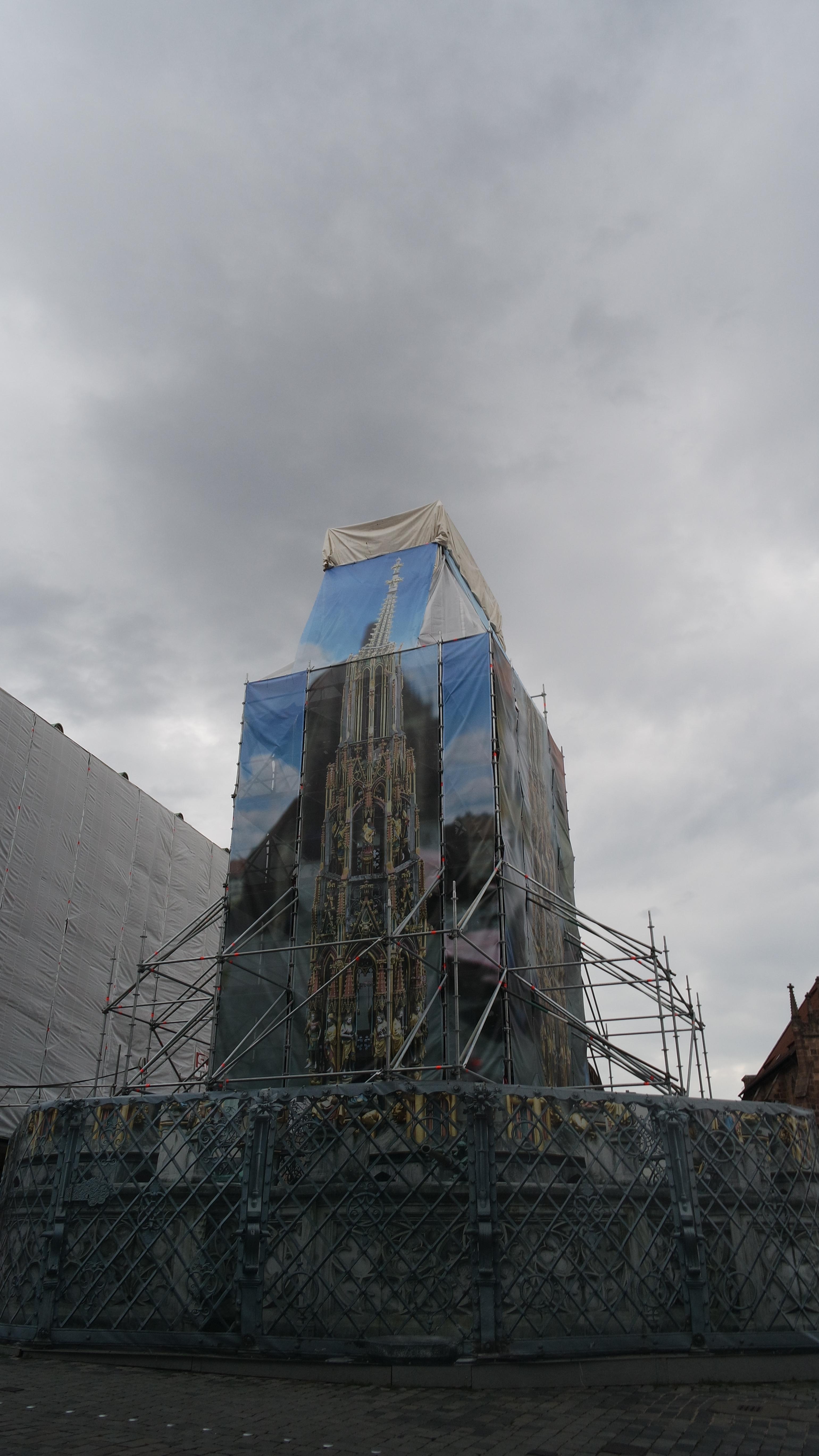 프라우엔 교회 맞은편에 있는 쇠너 부르넨 (Schoner Brunnen : 아름다운 분수)도 나와 인연이 없는 듯 했다. 화려한 금빛 분수는 보수 공사 때문에 천막으로 덮혀 있었다. 천막 위로 프린트된 모습을 통해 분수가 어떤 모습일지 가늠만 해보았다. 이 분수대에 와서 울타리의 금색 고리를 세 번 돌리며 소원을 빌고 그 누구에게도 이야기하지 않으면 소원이 이루어진다 하더라. 별 기대없이 추억삼아 재미로라도 소원을 빌고 싶었는데 아쉽다.
