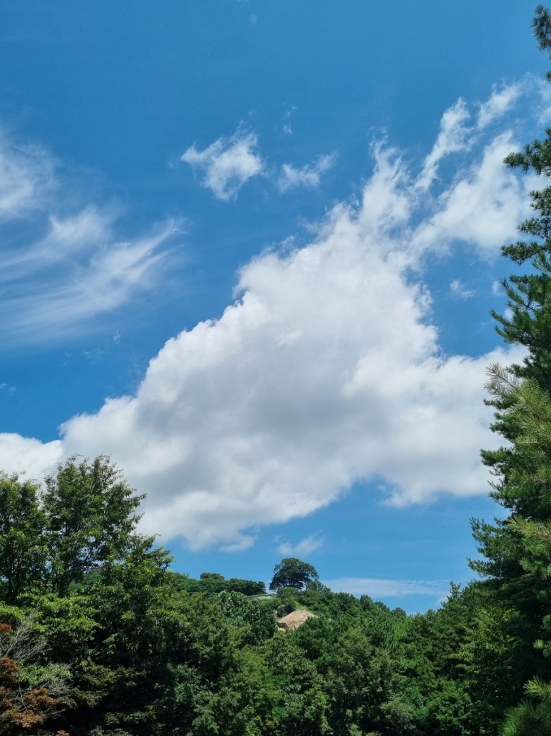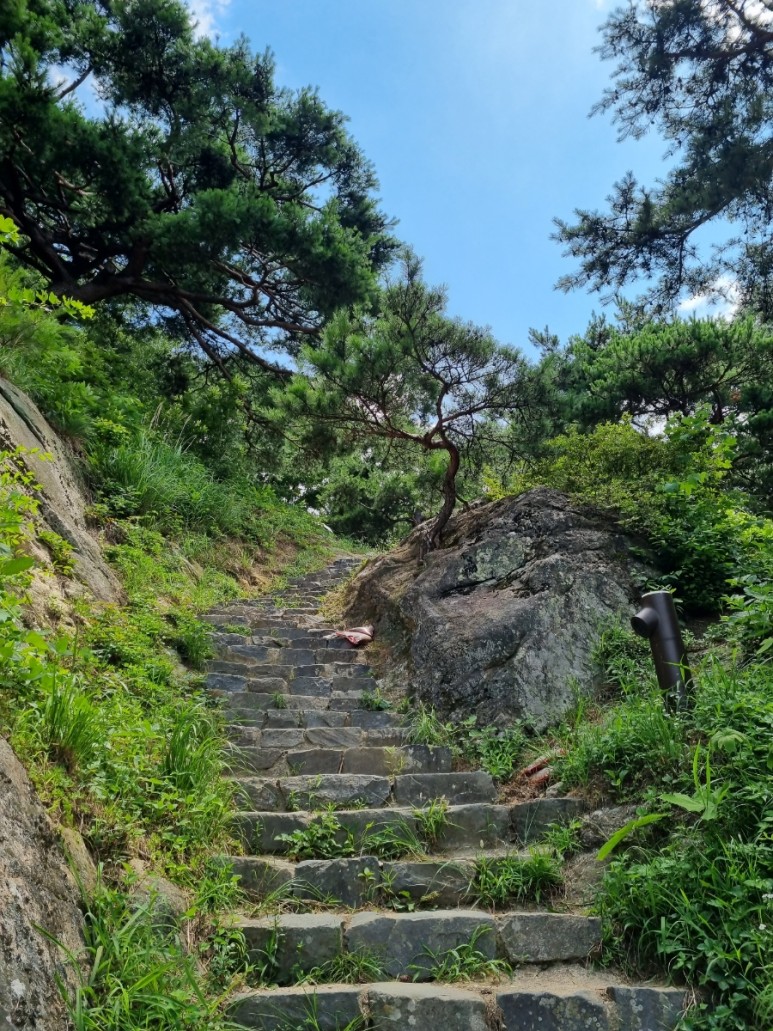 돌계단을 따라서 천천히 위로 올라갔다. 끝이 보이는 듯 하면서도 계속 이어진 계단, 날이 덥지 않았다면 이정도 계단이야 껌일텐데 날이 더우니 숨이 헐떡여졌다. 걸어가며 멀리 보이는 하늘은 푸르기 그지없고 구름은 하얗기 그지 없었다. 이토록 맑고 창창한 하늘 아래 이토록 더운 더위라니. 한여름이 아니고 가을 즈음에 왔으면 청명한 공기와 바람 덕분에 더 좋았을 것 같다는 생각을 했다.