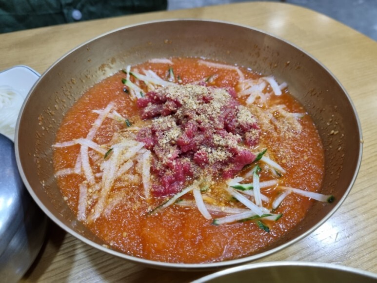 양 많은 사람은 한우물회 곱배기를 주문해야한다.