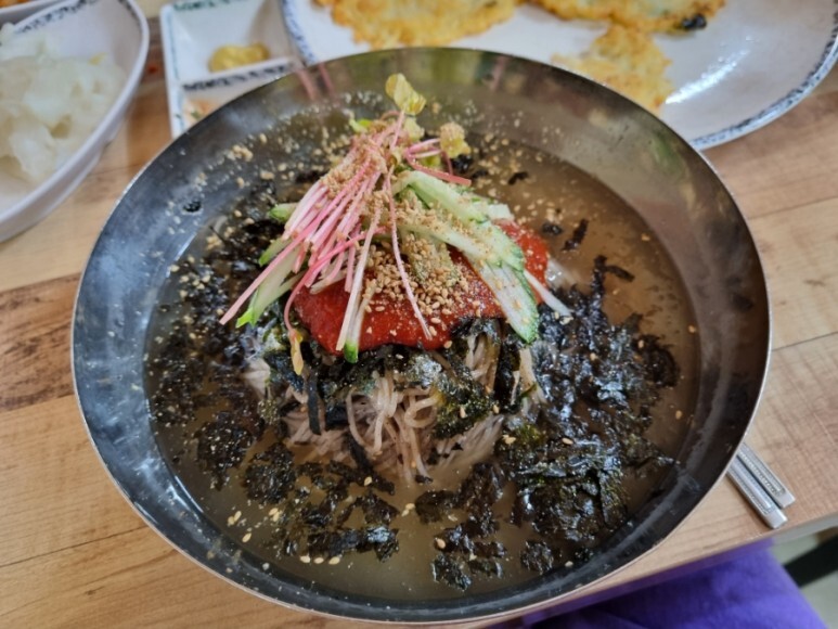 우리는 감자전1 물막국수1 비빔막국수1 주문했다.