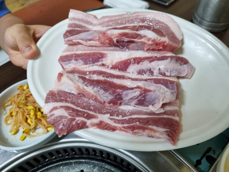 삼겹살이 나왔는데 와우 정말 신선해 보였다.