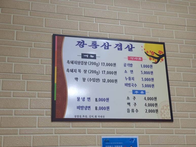 흑돼지 삼겹살 2인분이랑 비빔국수, 공기밥을 주문했다.