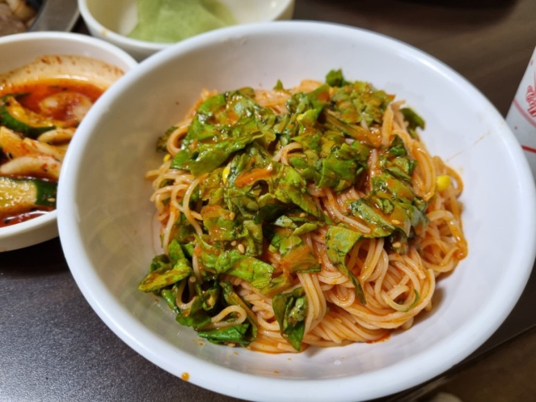 우리가 주문한 비빔국수는 집에서 후루룩 만들어낸 그런 국수였다.