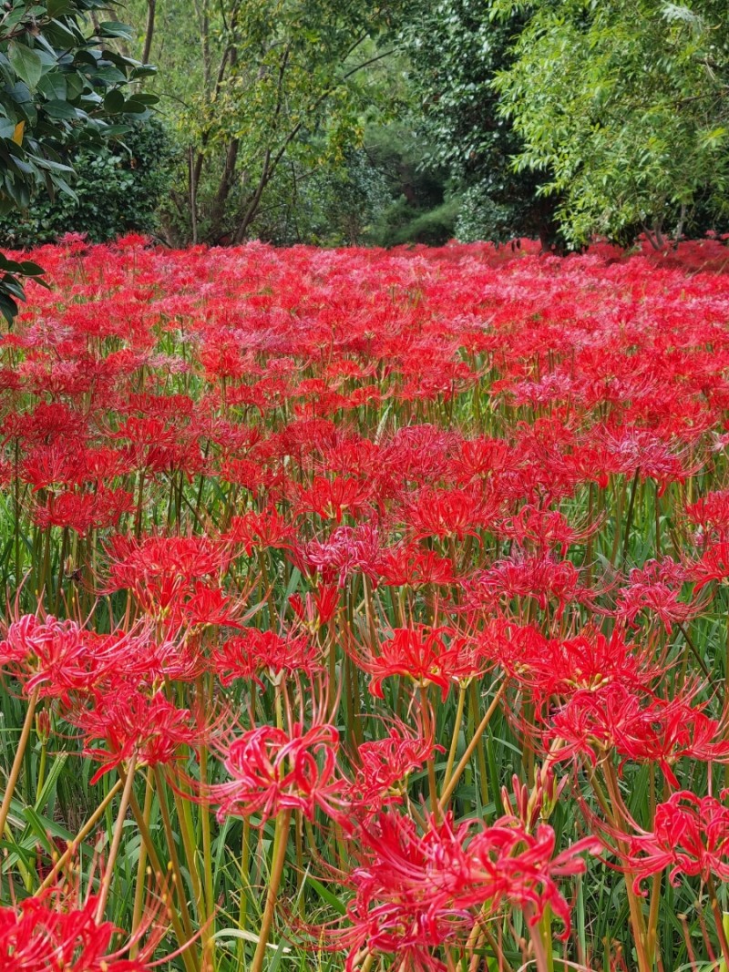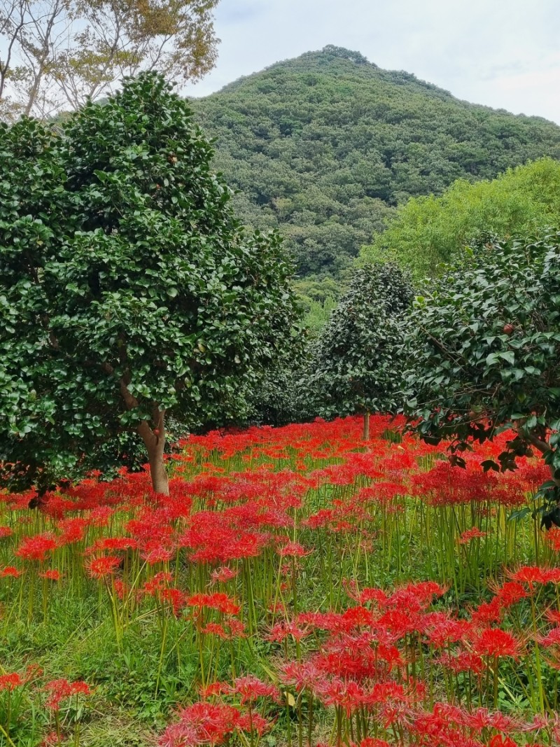 선운사를 나서는 길에 또 다시 보게 된 꽃무릇 꽃밭. 이 아름다운 꽃이 저물고 나면 곧이어 나뭇잎이 곱게 물들 것이다. 단풍나무가 아주 많았어서 곱게 색동옷 입은 단풍잎들을 구경하러 와도 좋을 것 같다.