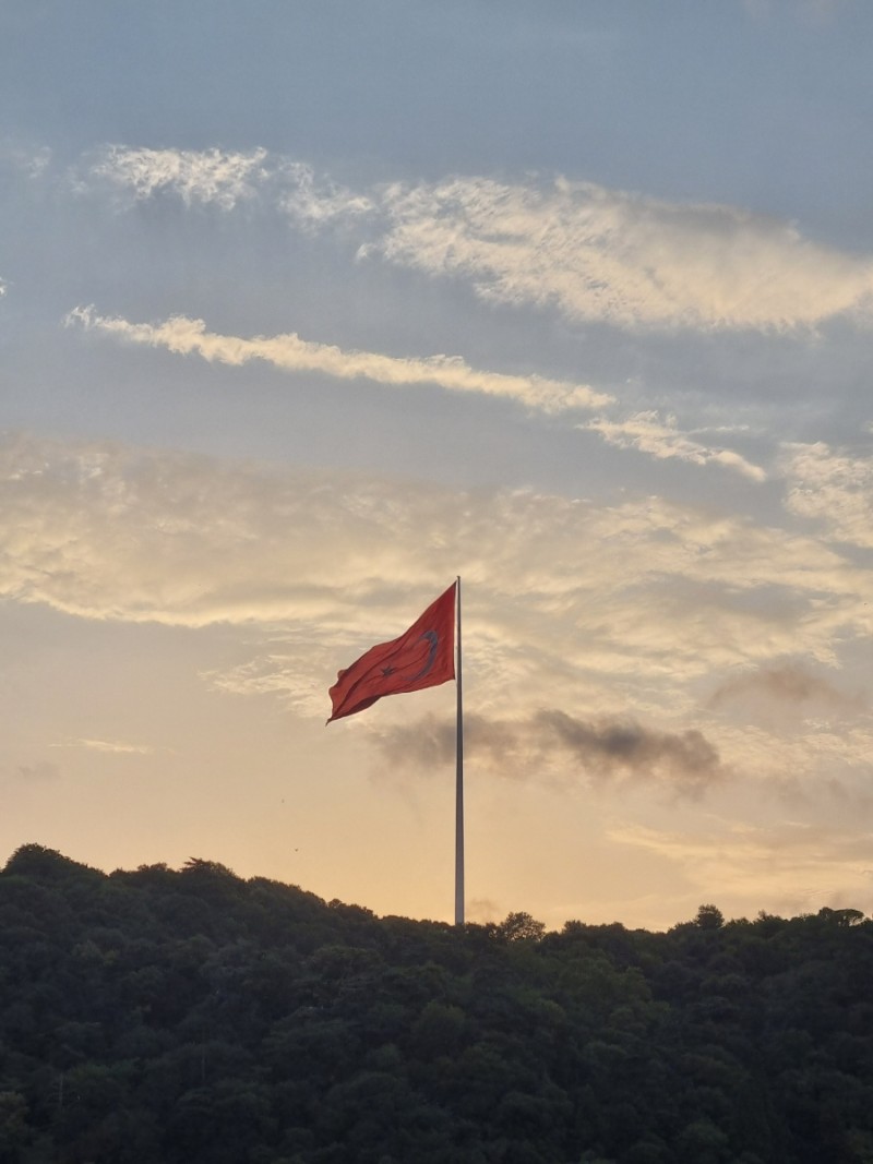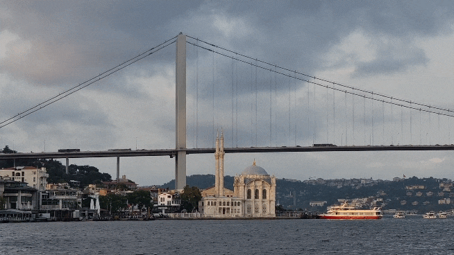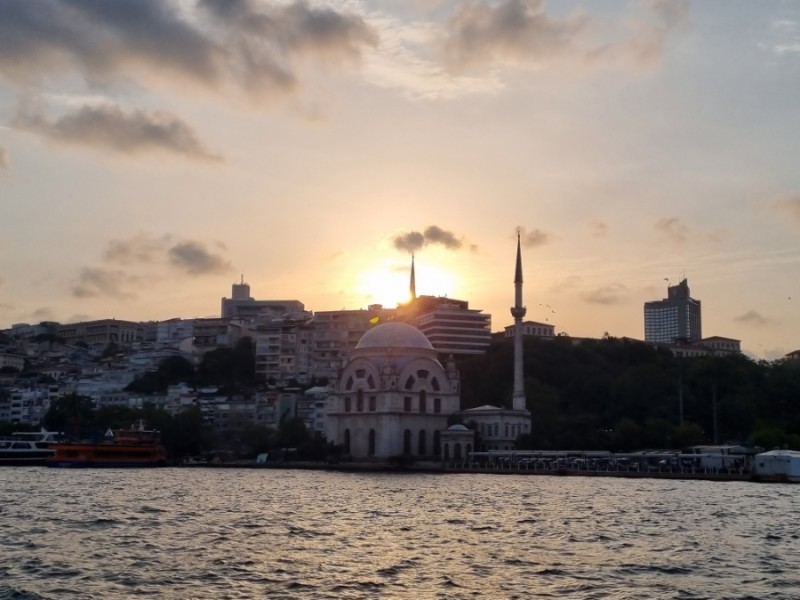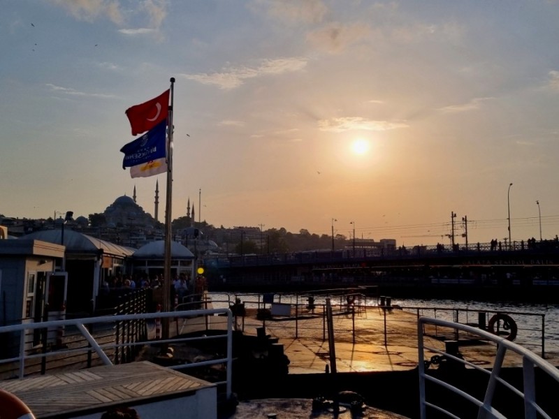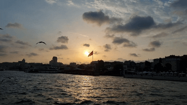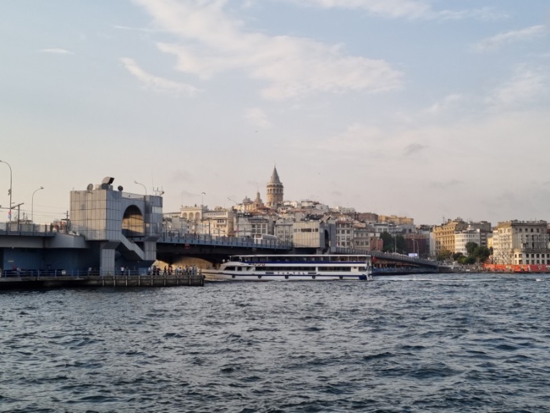 한쪽으로는 저물어가는 태양과 이스탄불의 모습을 담아보고 다른쪽으로는 보스포루스 다리와 코로나 시국에 만들어졌다는 높다란 타워를 눈에 담았다. 신시가지와 구시가지가 배 양쪽으로 모두 보여서 이스탄불의 명소들을 한눈에 담을 수 있었다.