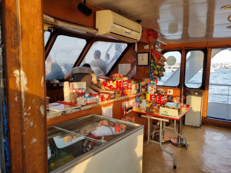 유람선은 보스포루스 다리 아래를 넘어서고는 방향을 바꾸어 되돌아가기 시작했다. 날은 어둑어둑해지고 바깥 풍경을 구경하느라 오래 서 있던 우리는 안에 들어가 좀 쉬기로 했다. 유람선 안에 있는 매점에서 따뜻한 차이 하나를 사서 마셨다.