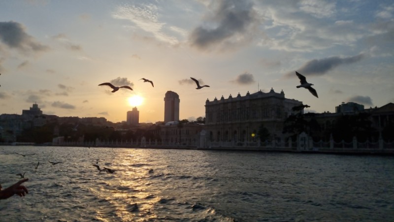 우리가 탄 유람선은 에미뇌뉘 선착장에서 출발해 돌마 바흐체 궁전, 시라간 궁전, 메지디예 모스크 근처를 지나서 보스포루스 대교에서 방향을 틀어 에미뇌뉘 선착장으로 돌아오는 코스였다.