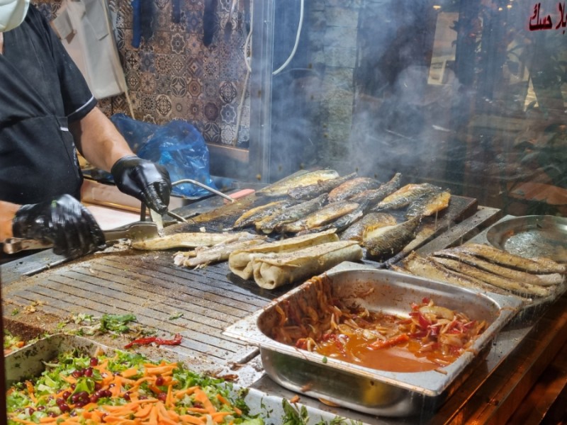 이번에는 처음에 생 고등어를 올리는 장면부터 볼 수 있었다. 바삭바삭 노릇노릇하게 구우려면 한참 시간이 걸리고, 게다가 가시도 빼내야 하니 다른 식당들 보다 시간이 오래 걸려서 줄을 서는 것 같았다. 그래도 기다려서라도 꼭 먹고 싶었던 고등어 케밥.