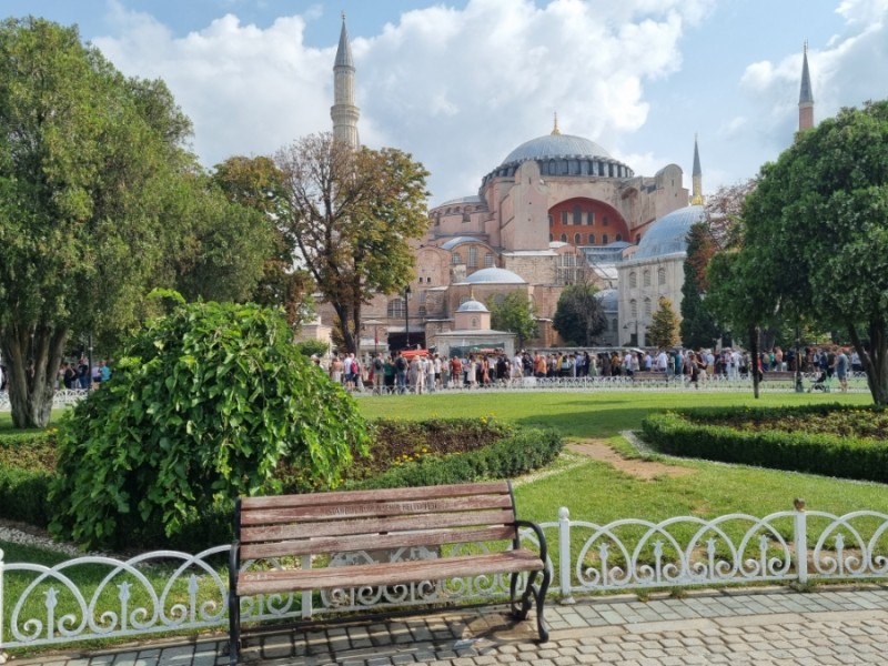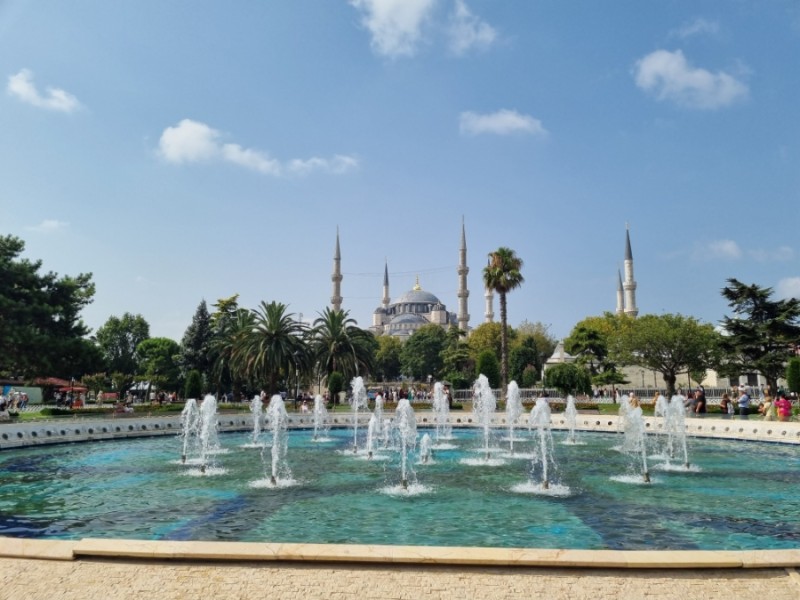 톱카프 궁전은 구시가지 근처에 자리잡고 있어서 우리 호텔에서 걸어갈 수 있었다. 가는 길에 이제는 정말 익숙해져버린 술탄 아흐매트 광장과 아야 소피아, 블루 모스크가 마주 보고 있는 분수대가 아름다운 공원도 지나쳤다.