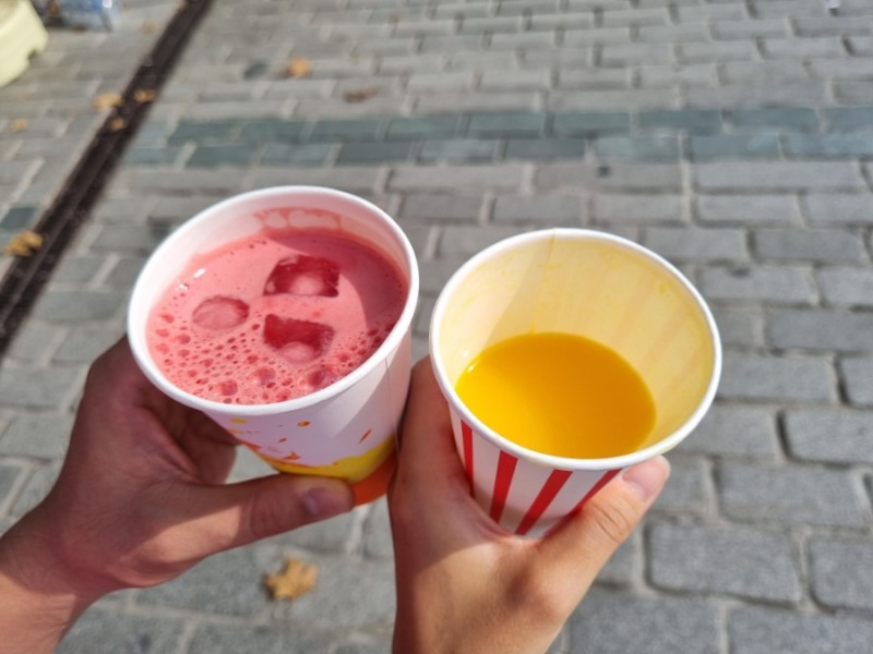 무더운 8월의 이스탄불, 계속 걷다 보니 갈증이 나서 근처 쥬스 가게에서 쥬스를 사 마셨다. 수박 쥬스와 오렌지 쥬스, 수박은 덩어리들을 믹서기에 갈아 얼음을 동동 띄워 주었고 오렌지는 앞에 널린 오렌지를 가져가 착즙해서 컵에 담아 주셨다.