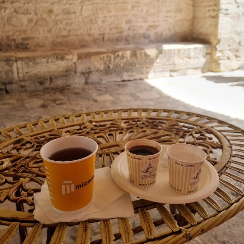 우리는 잠깐 카페에 들어가 따뜻한 아메리카노와 터키식 커피를 주문하고 야외 테이블에 앉아서 휴식을 취했다. 터키에 왔으니 터키식 커피를 주문했지만 아무래도 맑은 커피에 익숙해진 우리에게 터키 커피는 뭔가 어색했다. 꺼끌꺼끌한 가루가 씹히고 너무 진해서 왠지 미숫가루를 먹는 기분이 났다. 그래도 알면서도 계속 기념삼아 터키식 커피를 주문하게 되었다. 하하.