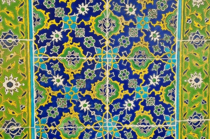 궁전 안 정원을 둘러보다 보면 입구에서 지나쳤던 두 개의 뾰족한 첨탑이 슬쩍슬쩍 보였다. 하늘이 참 맑은 날이구나, 배롱나무 꽃 피어있는 푸르른 정원을 거닐며 건물마다 들어가 독특한 타일 무늬와 장식들을 구경했다.
