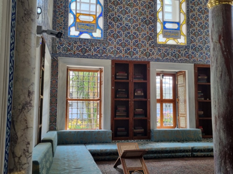 궁전 안의 도서관도 화려함의 끝판왕이었다. 이런데서 책을 본다면 하루 종일이라도 있겠는걸? 큰 창을 통해 빛이 스며들었고 벽면에는 화려한 푸른 색조의 타일들이 줄지어 붙어 있었다. 천장에는 화려한 기하학적인 무늬로 가득 꾸며져 있었다.