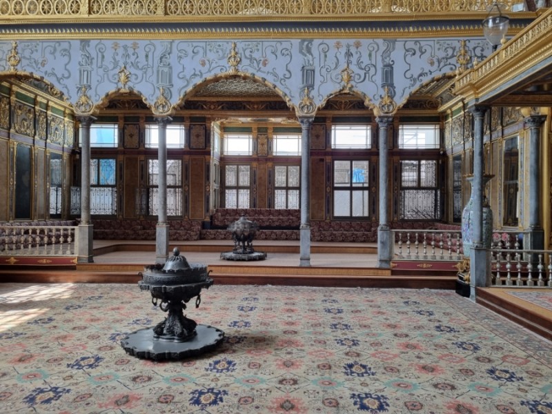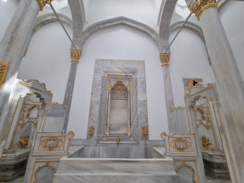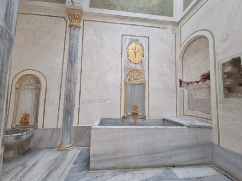 하렘 안에는 술탄의 모후가 사용하던 대리석으로 만든 목욕탕이 있었다. 하얀 톤의 검은 무늬들이 살아있는 대리석들로 벽과 바닥을 채우고, 기둥과 욕조, 수도꼭지가 달린 개수대 등 모든 것들이 다 대리석으로 만들어져 있었다. 그리고 대리석 위로 반짝이는 금칠 장식으로 화려함을 더했다.