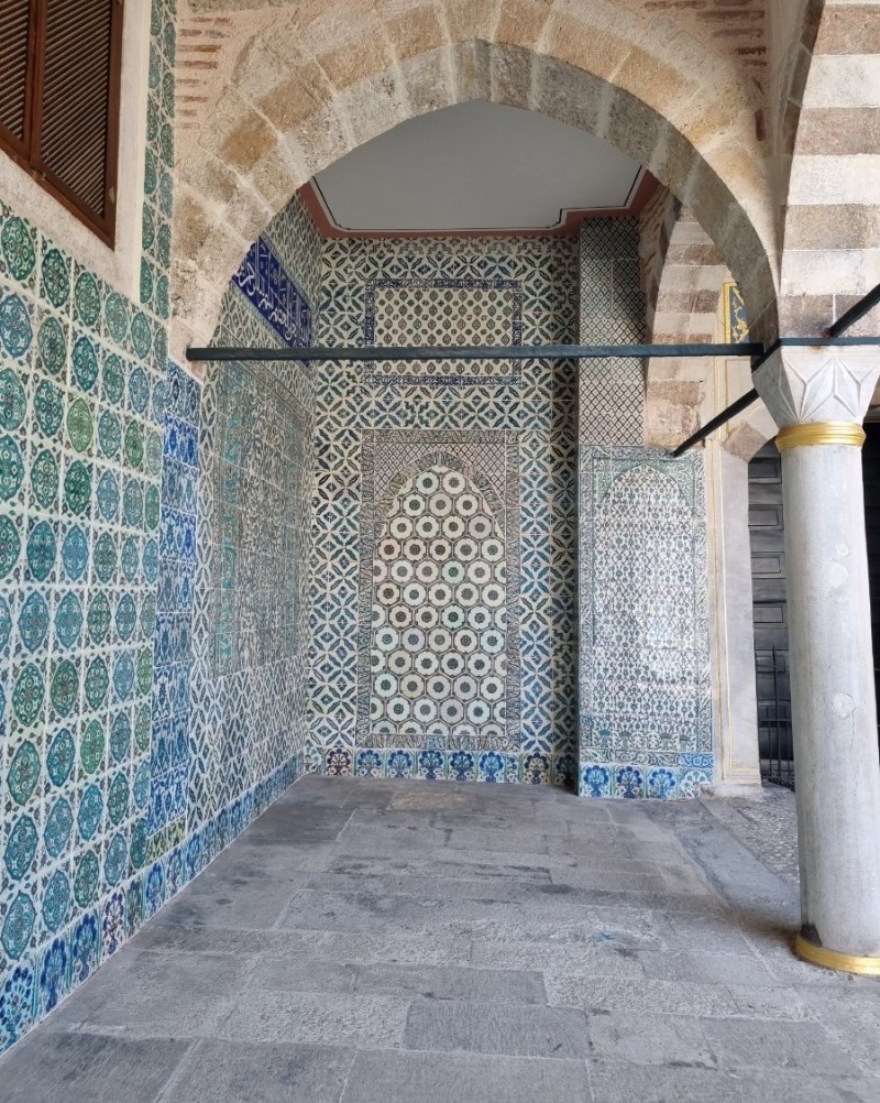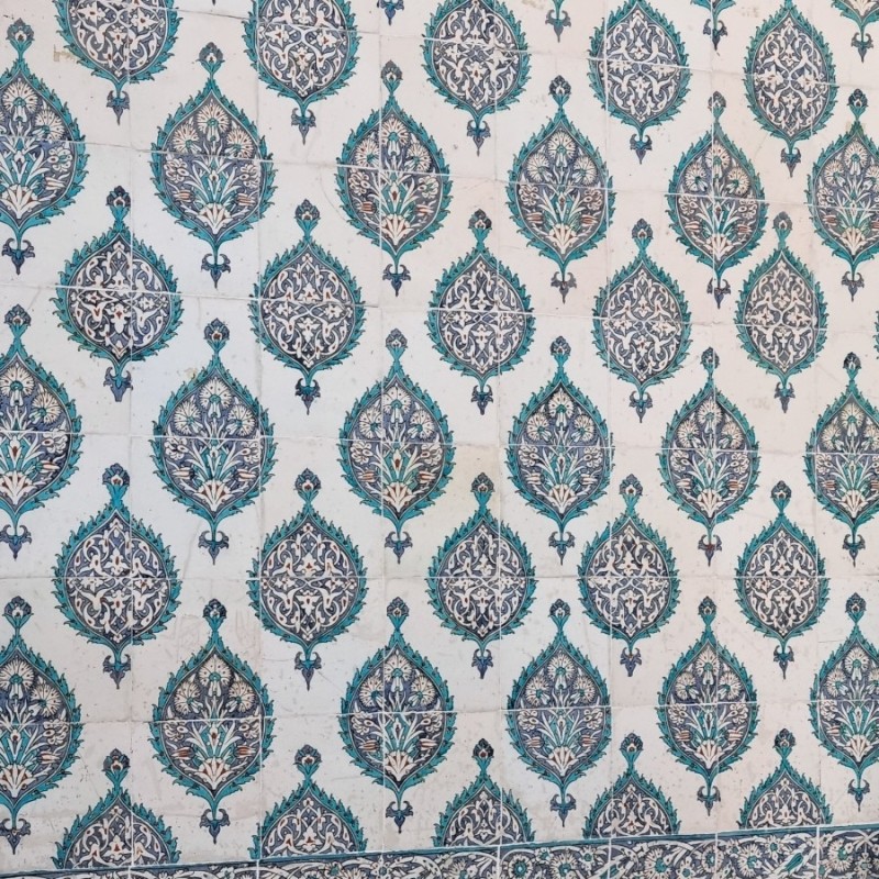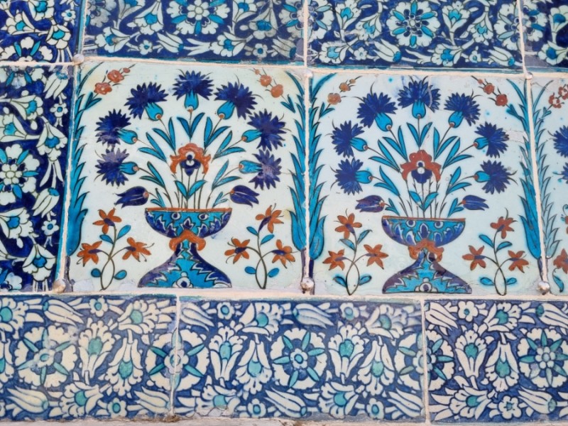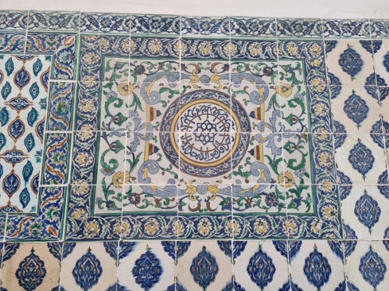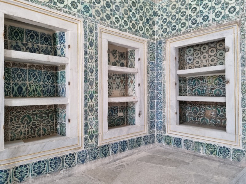 벽면에 붙어있던 푸른 색조의 타일들이 너무 아름다워서 이곳에 한참 있었다. 잠깐 앉아서 쉴 수 있는 공간이 있어 불난 발바닥을 달래려고 잠시 휴식시간을 가졌다. 차가운 돌 위에 앉아 벽면과 천장을 가득 눈에 담았다.