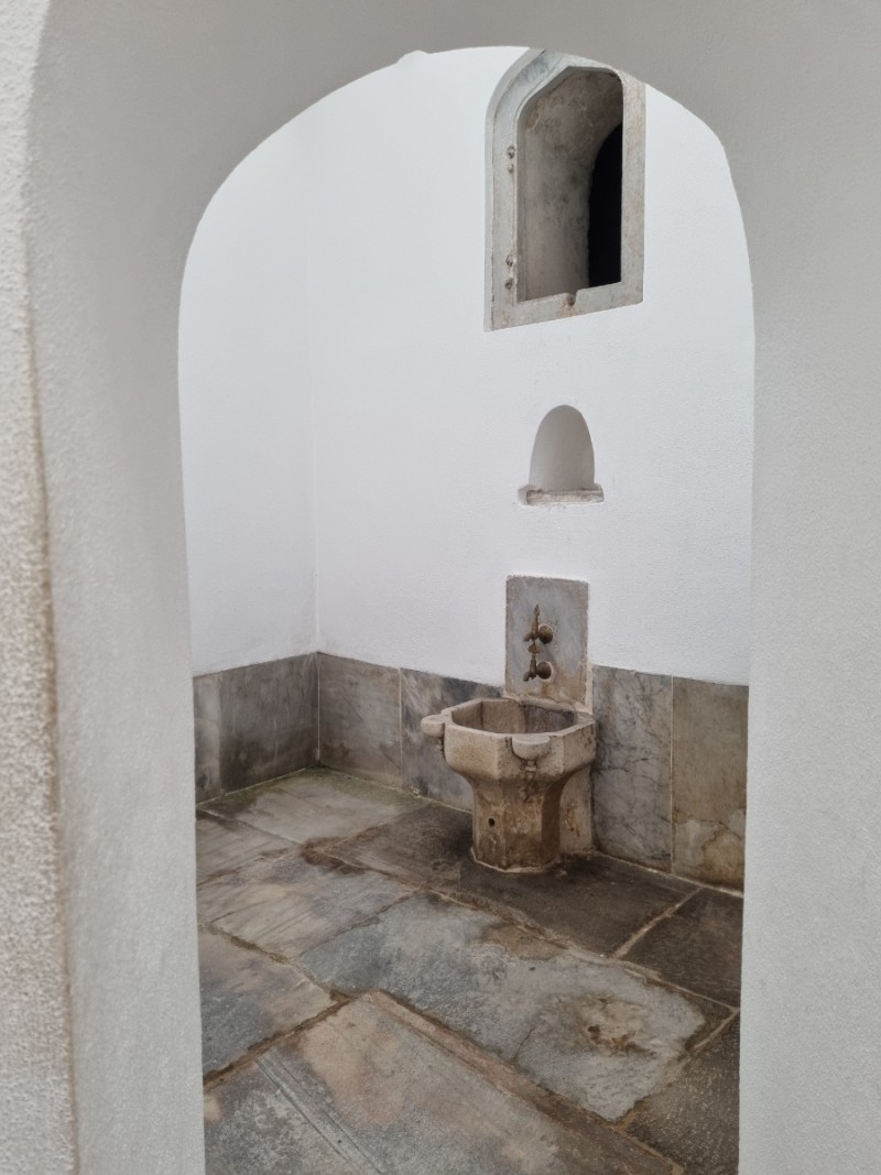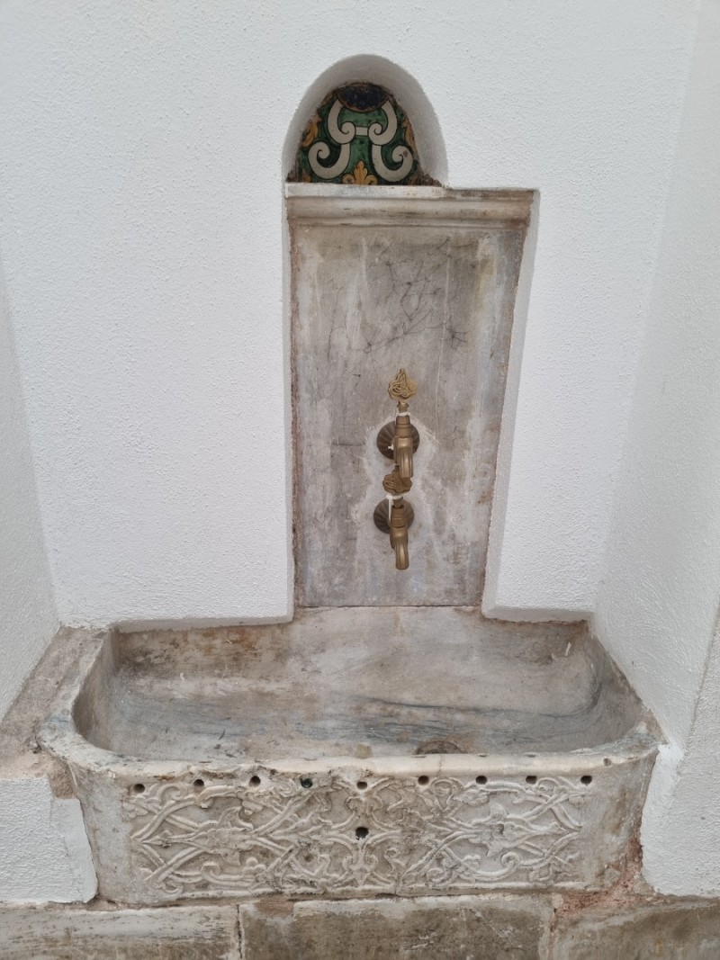 화려한 타일로 수놓아진 커다란 뜰의 복도를 걸었다. 몇몇 사람들이 개수대의 수도꼭지를 돌려 물을 틀고 손을 씻었다. 우리도 기념삼아 수도꼭지에서 흐르는 물에 손을 씻어 보았다.