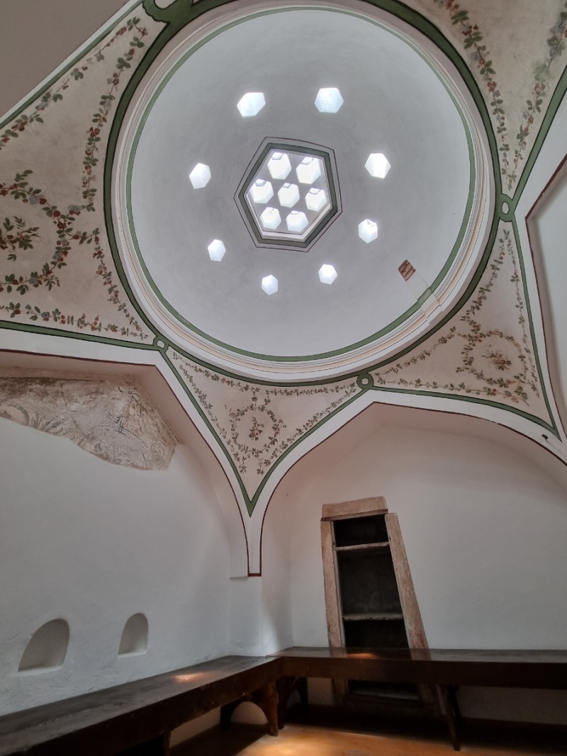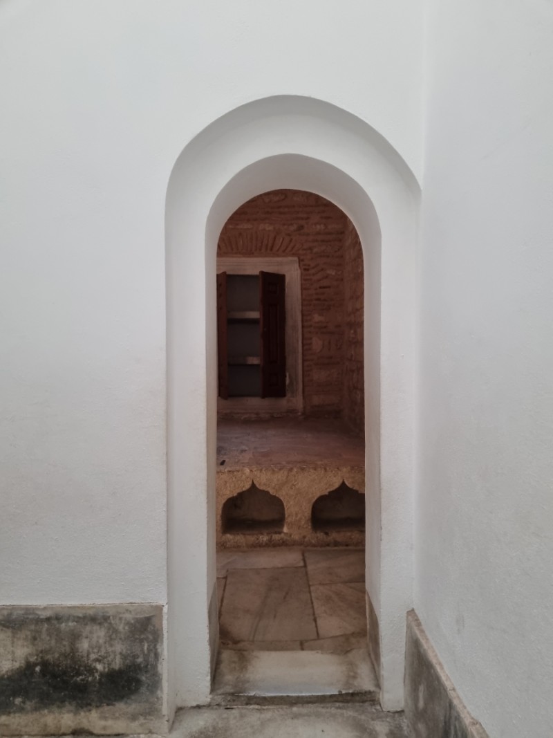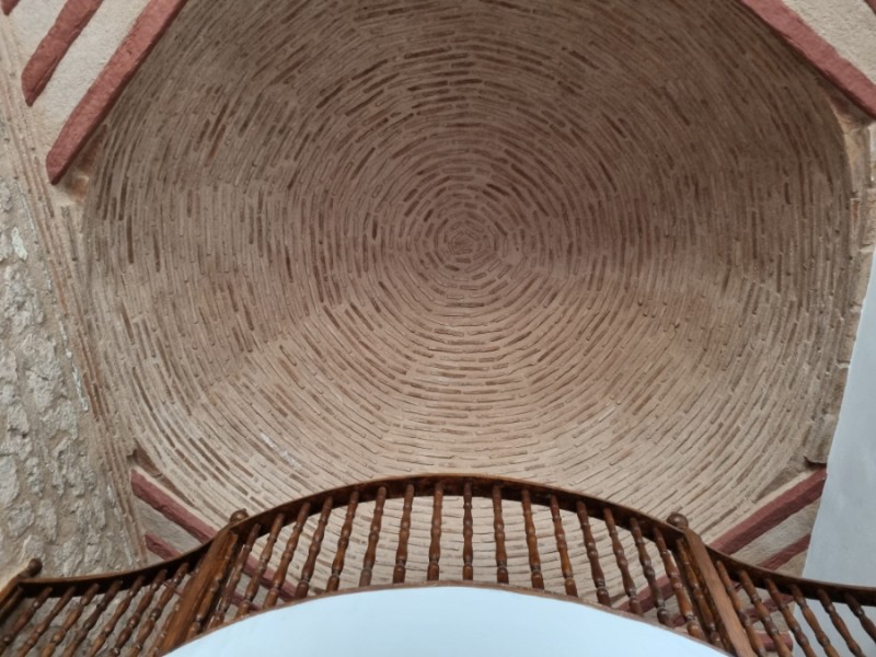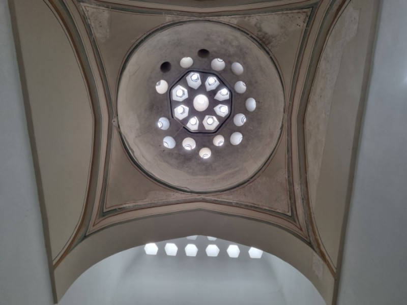 인상적이었던 공간 중 하나는 분홍색 외벽에 푸른색 타일로 꾸며져 있던 곳이었다. 벽면이 아주 높았는데, 천장은 벽돌을 쌓은 돔 구조로 되어 있었다. 천장에 달린 작은 창과 벽면에 달린 커다란 창 사이로 햇살이 스며 들어서 건물 안이 밝았다.